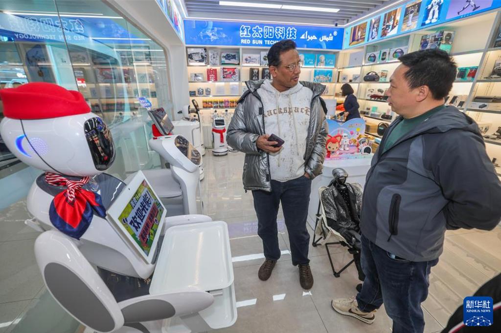 世界超市义乌新春焕新开市。 图为2月28日义乌全球数贸中心人形机器人庆祝开市。 (新华社)