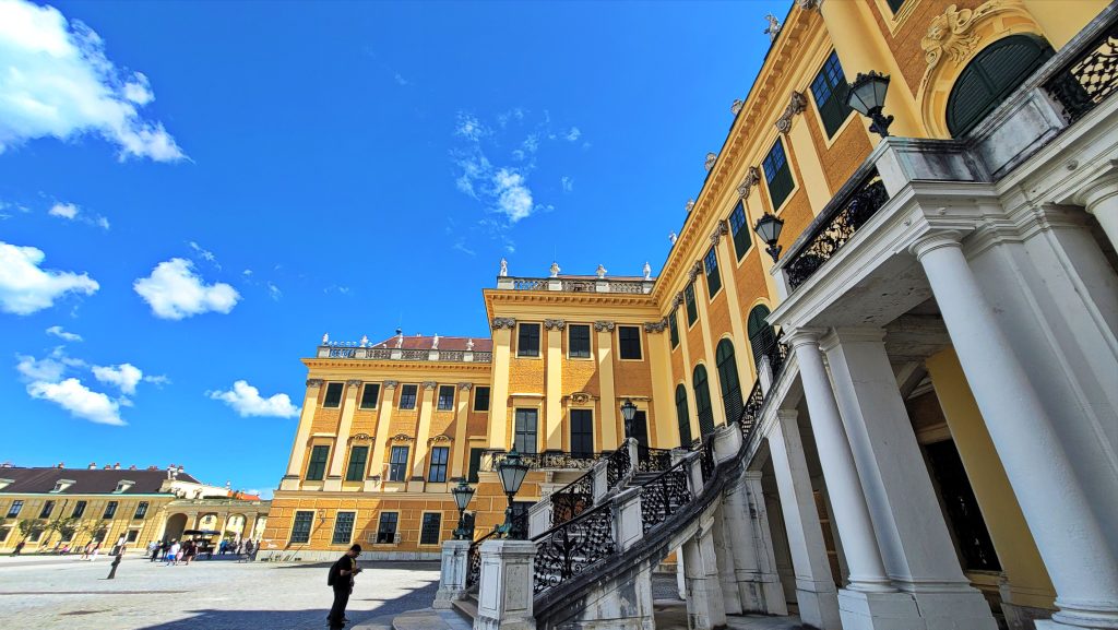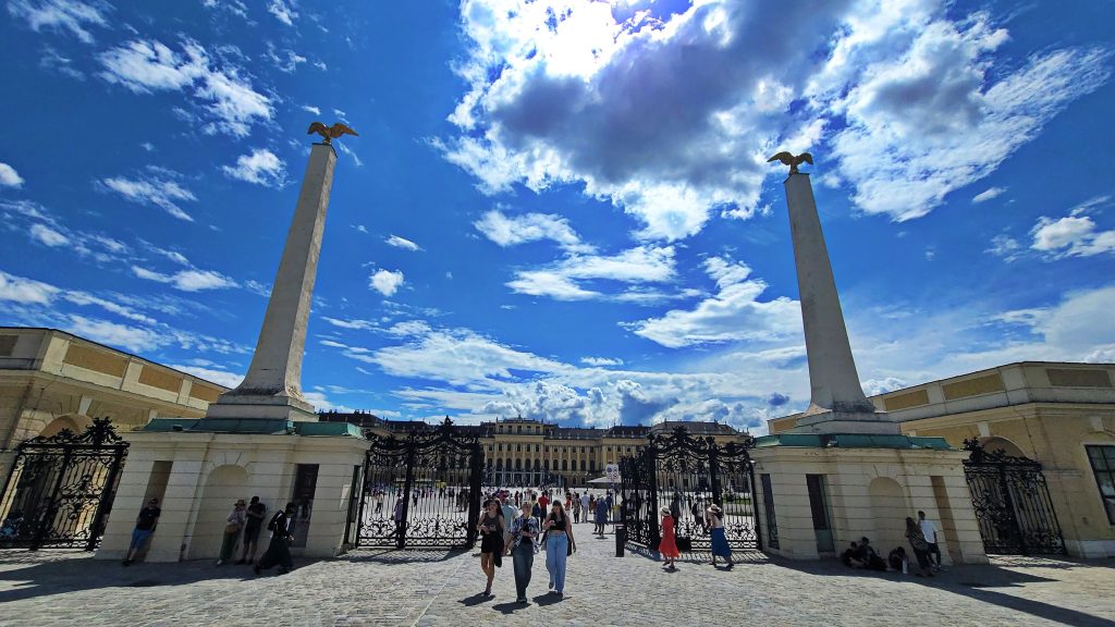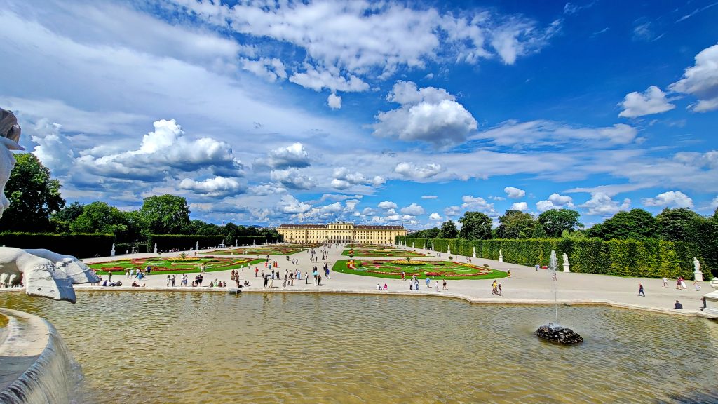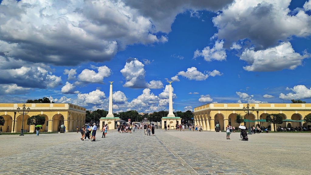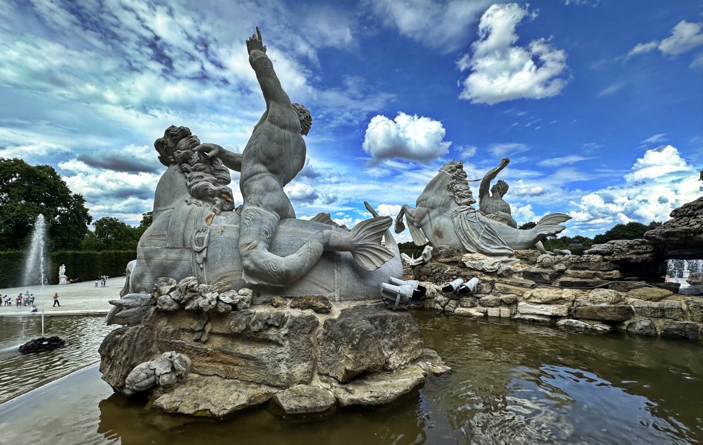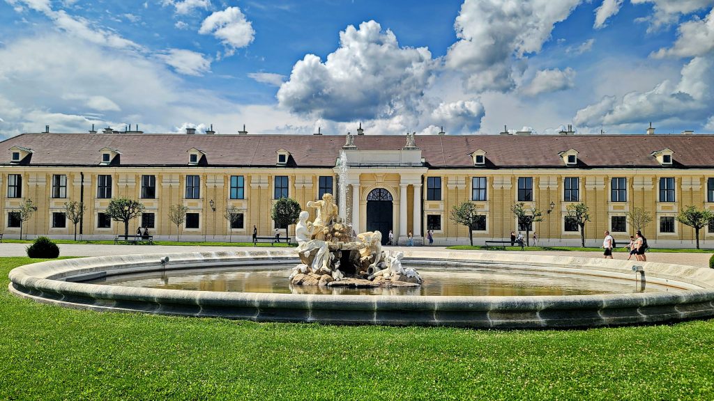 美泉宫是维也纳最具代表性的巴洛克宫殿,曾为哈布斯堡王朝的夏宫。宫殿外观庄严对称,金黄色立面在阳光下格外醒目,象征着帝国时代的权力与荣耀。内部房间陈设华丽而克制,镜厅、宴会厅与皇室起居室依次展开,细节中透出严谨的宫廷秩序。宫殿背后的花园层层展开,轴线笔直,喷泉、雕塑与修剪整齐的林篱相互呼应,一直延伸至山丘上的凯旋门。站在高处俯瞰,宫殿、花园与城市融为一体,既恢宏,又不失宁静。由于时间限制,我们舍弃了宫内参观,将重点放在了游览宫廷外观、广场、花园、雕塑与喷泉以及山丘上的凯旋门。
