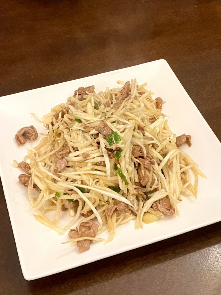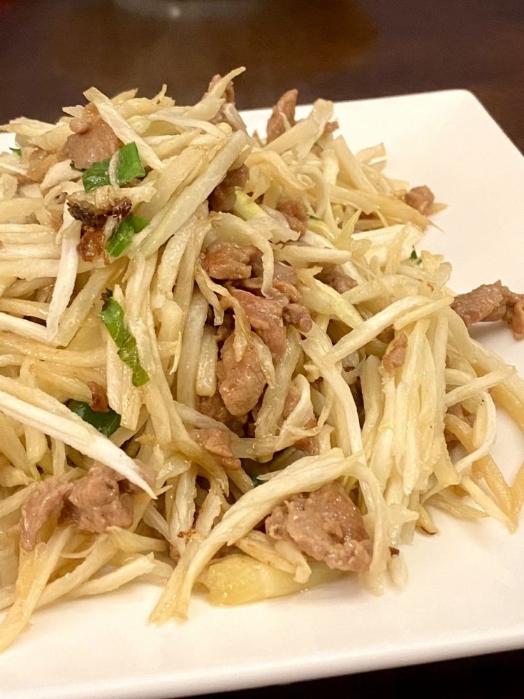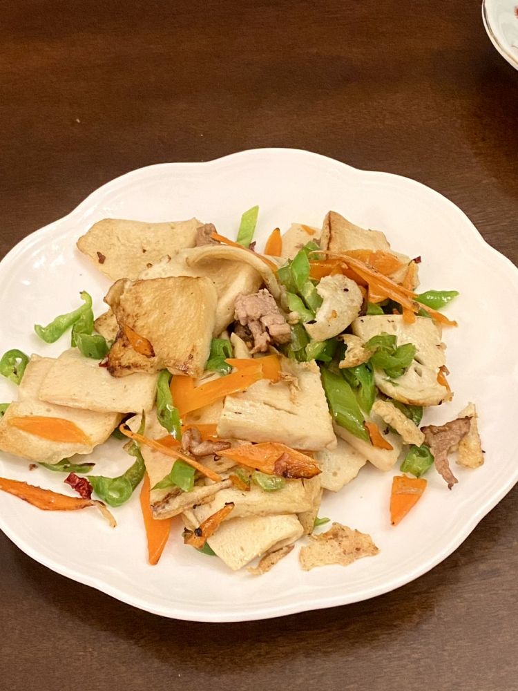 玫瑰切糕,茭白肉丝,胭脂萝卜,千页豆腐