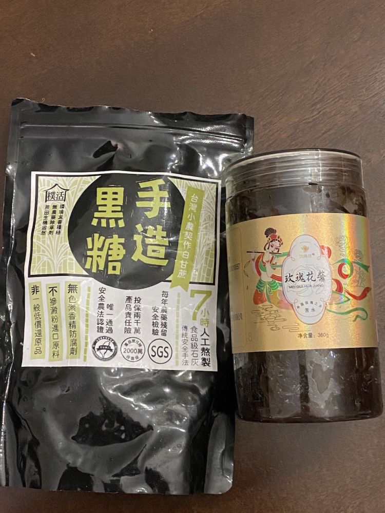 用的甘肃的苦水玫瑰的花酱,还有红糖,加一点点水,微波炉打个15秒。