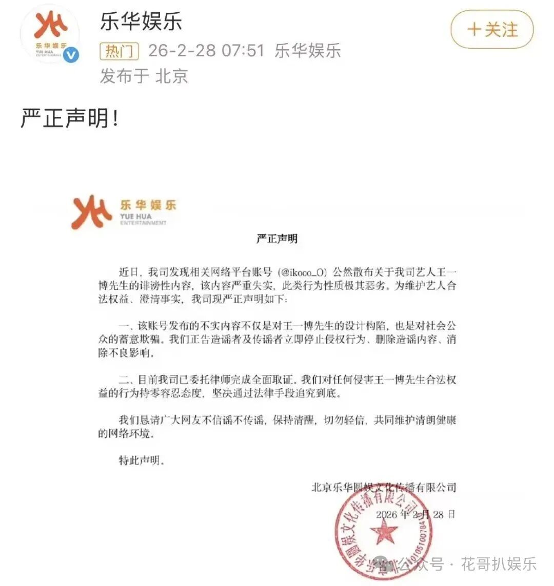 就在吃瓜群众疯狂吃瓜,粉丝努力澄清,正主沉默不语的时候,乐华娱乐难得没有像以前一样什么话都闷着不说。几个小时之后,乐华娱乐迅速发布严正声明,直指相关内容系恶意伪造,并已委托律师全面取证,准备追究造谣者的法律责任。只不过这样的声明吃瓜群众看得太多了,所以只有粉丝吃了颗定心丸,还是有不少人围观看热闹。
