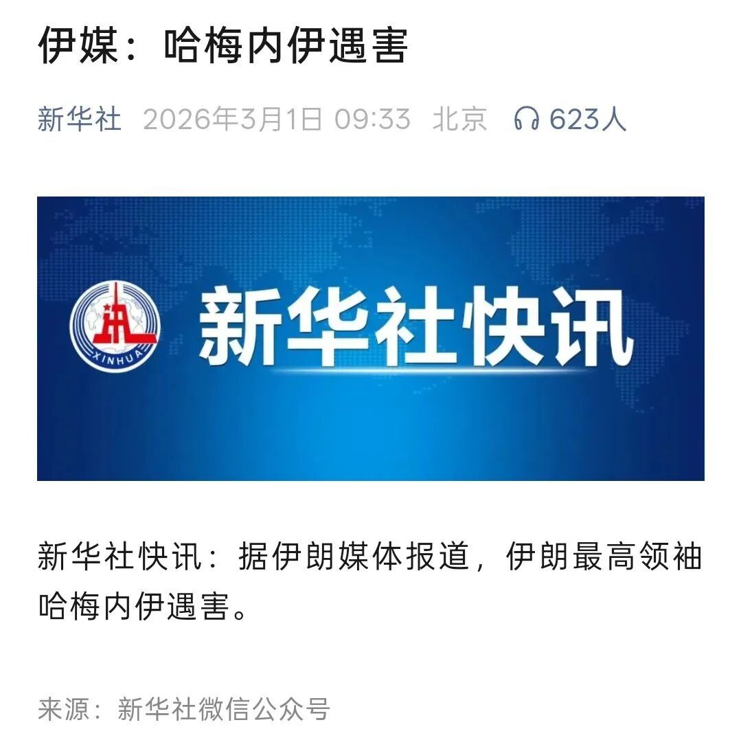 快要推送这篇文章之前,最新消息出来了。伊朗官方电视台3月1日称,哈梅内伊遇害。伊朗宣布自当地时间1日起,开始为期40天的国家哀悼。
