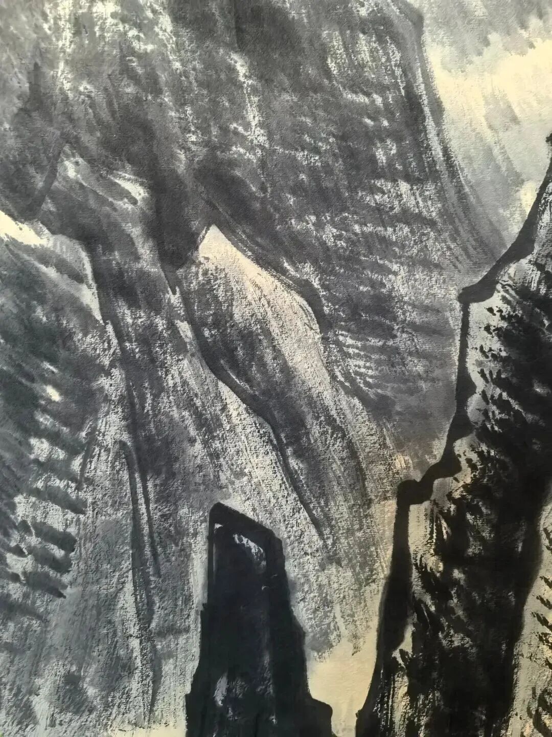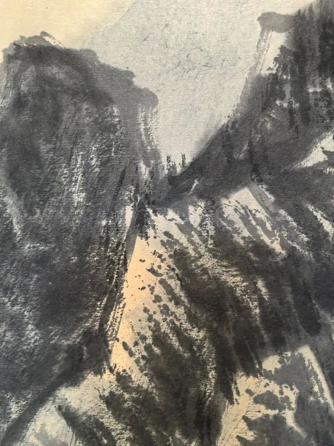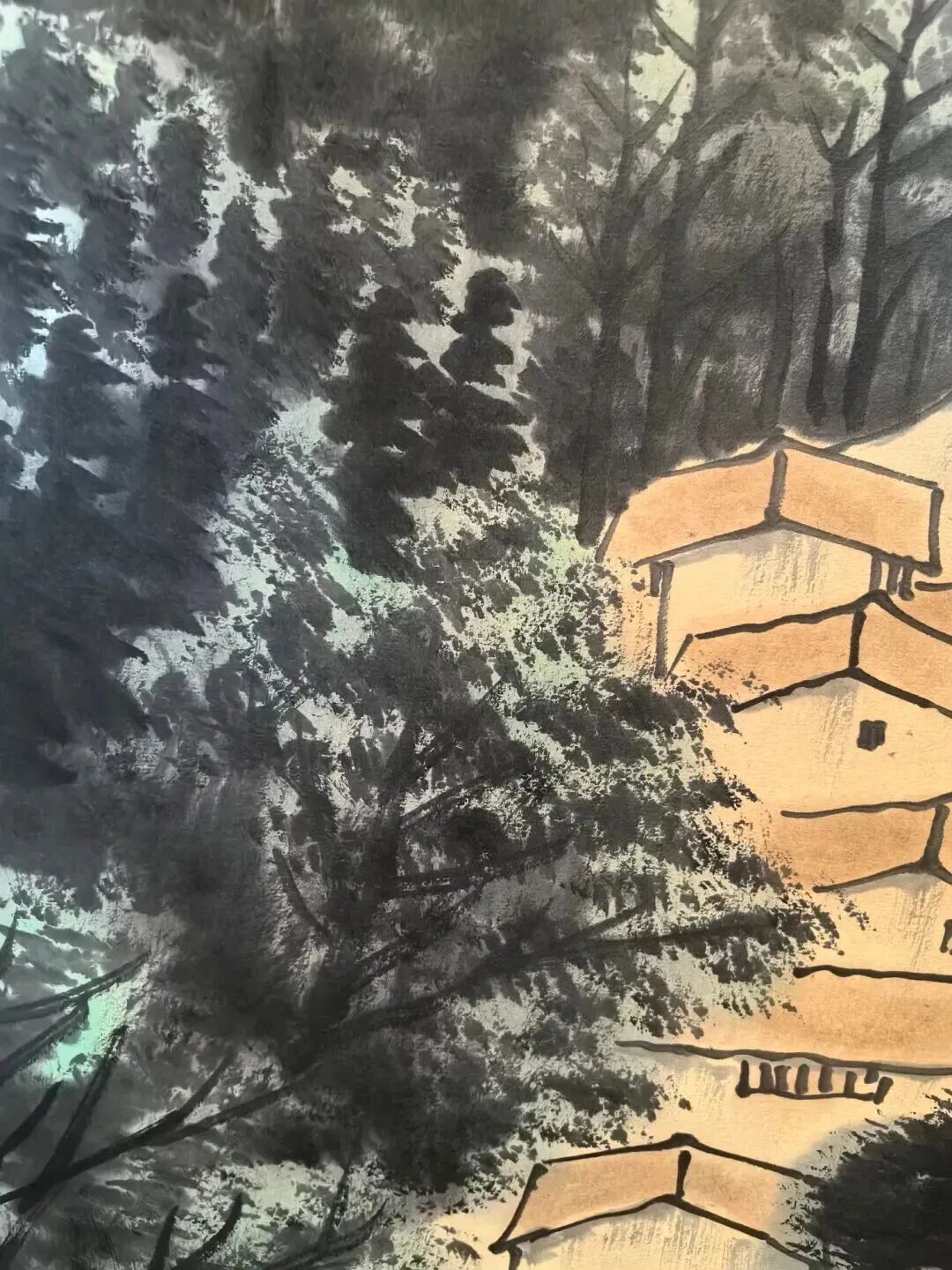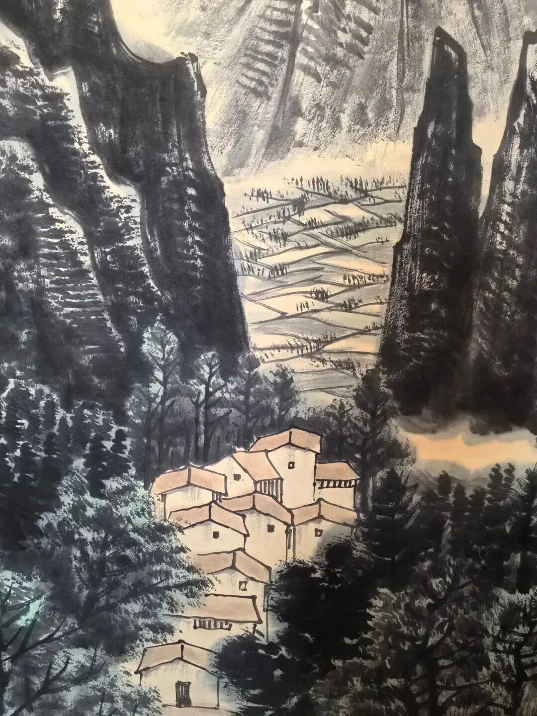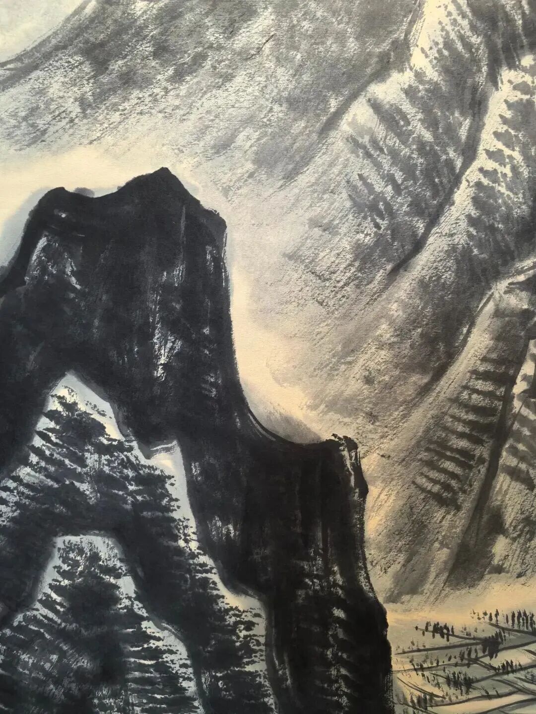 李可染这画画技法,那叫一个绝!他用浓墨泼洒,又用皱擦积墨,把江南的湿润和清新表现得淋漓尽致。你瞧那山石,泛着水光,春花也像被雨水浸透了,水淋淋的,感觉伸手一摸就能摸到那雨水。