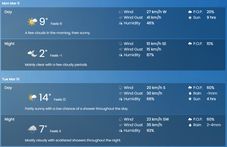根据Weather Network周日发布的报告,大多伦多地区(GTA)的气温预计将在15°C上下浮动。温莎(Windsor)、伦敦(London)以及安省西南部的其他一些地区,最有可能冲击20°C高温。由于地势以及距离五大湖较远,这些地区在升温方面更具优势。
