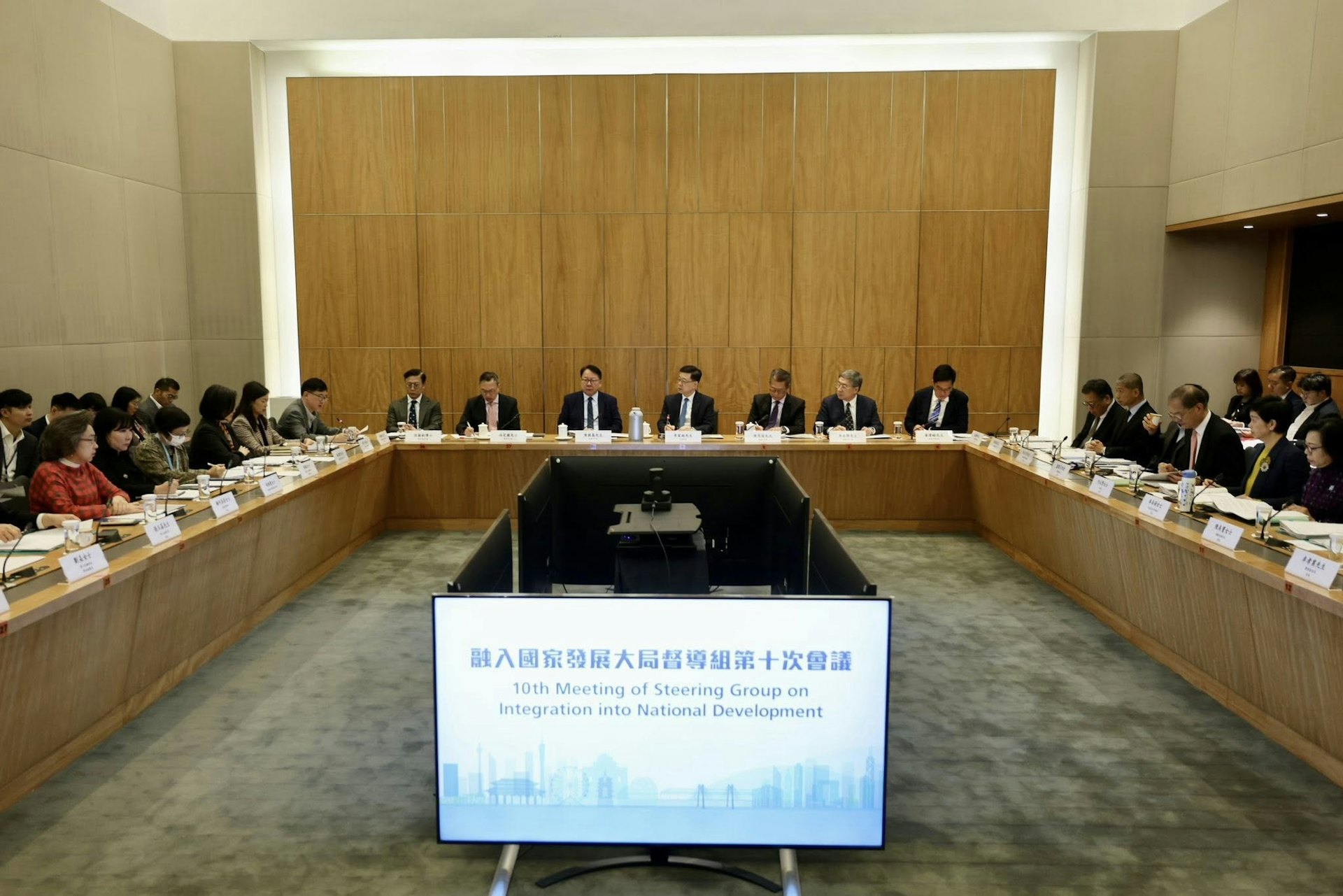 2月12日,香港(专题)特首李家超主持融入国家发展大局督导组会议,领导全体司局长开展对接“十五五”规划的准备工作。(李家超Facebook)