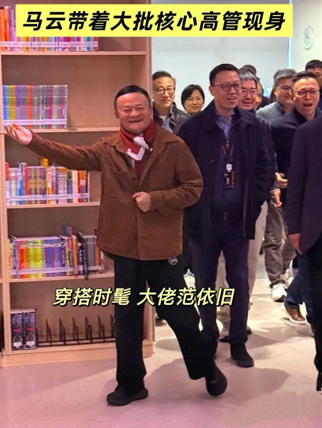 许久没有露面的马云状态很好,当天他穿一件棕色外套、搭配黑色裤子,系一条红白格子的斯坦福围巾,双手插兜的模样随性又霸气。