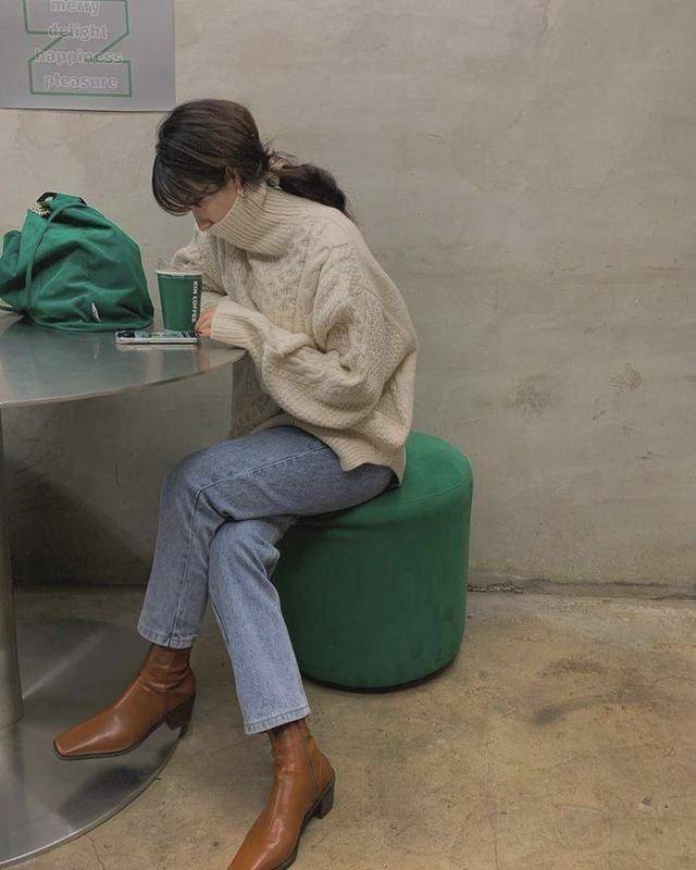 外观秀气一点的踝靴,配九分烟管裤最显瘦,即便是身穿高领大毛衣,也完全没有臃肿感。