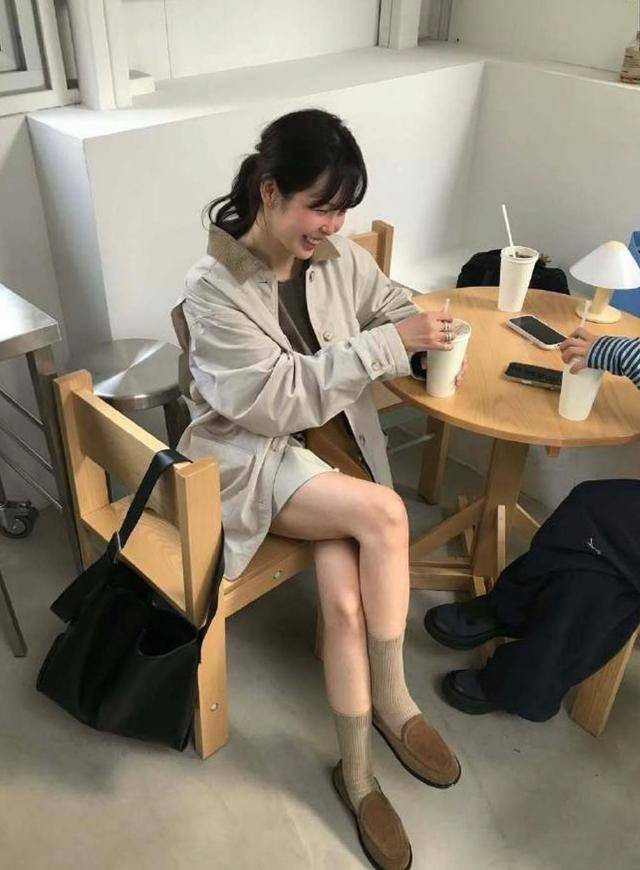 一双款式简约的棕色乐福鞋,一年四季皆可穿,搭配短裤+短袜,修饰的腿型又细又直,套件衬衫好有魅力。