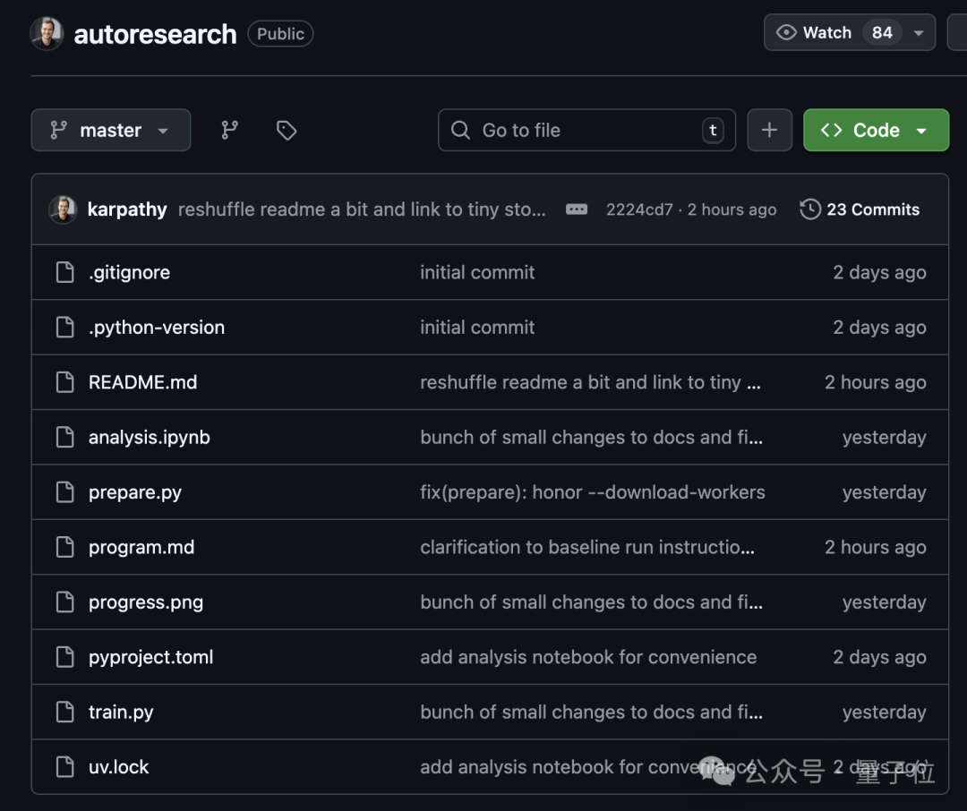这个项目名叫 autoresearch,主打让智能体完全自主地搞科研,只要在 Markdown 文档里写好指令,剩下的流程全都由 AI 自动完成。