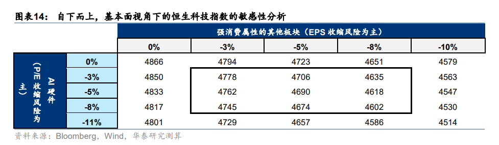 华泰证券从自下而上视角,对恒科指数企稳点位进行敏感性分析(不含地缘局势变数):