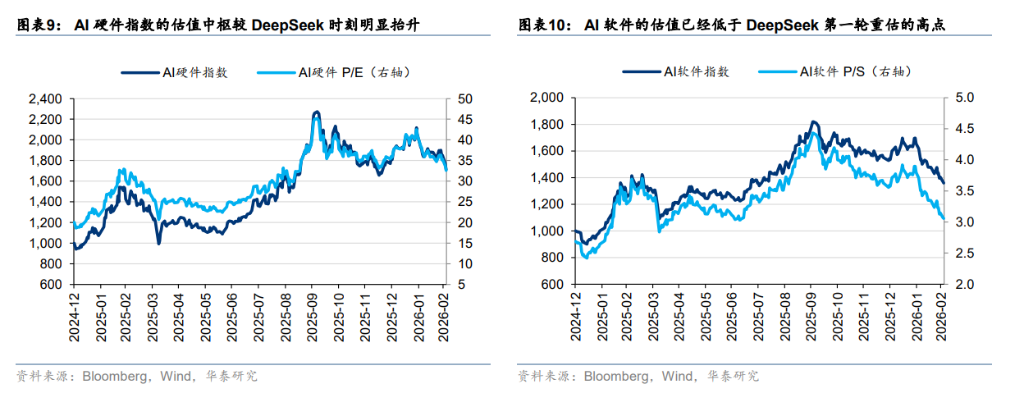 华泰证券认为,科技板块方面,AI硬件估值虽较高点回落27%,但仍高于DeepSeek第一轮重估前水位,市场继续定价国产替代稀缺性。