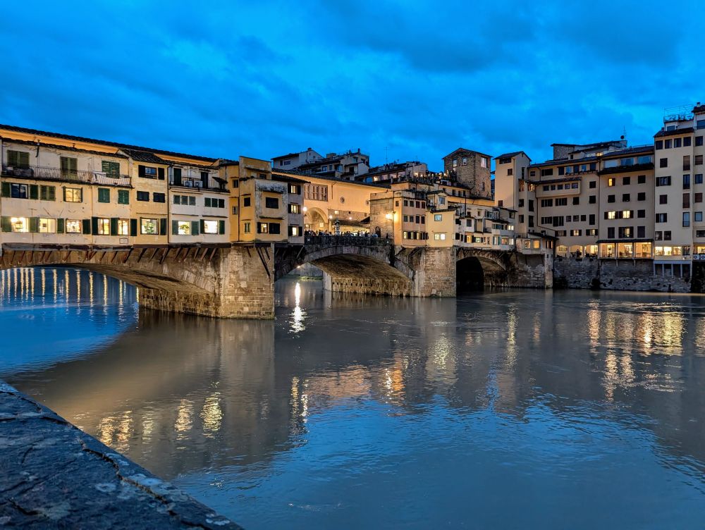 佛罗伦萨有座网红桥,建于1345年,名叫老桥(Ponto Vecchio)。估计原来没有名字,建了其它的桥后,就变成老桥了。我们第一次去佛罗伦萨就住在老桥南面。老桥两边大多是卖没用的旅游纪念品或者金银首饰的商店,古代曾经卖过鱼肉,但是梅迪奇家人受不了那个气味,这个七八十年代住在上海菜场边上的人都是深有体会的。他们于是下令桥上只准卖金银珠宝。从此,这个桥上就只卖没用的东西了。老桥上还曾有一条封闭通道,直接位于桥顶,使梅迪奇家族能够私下从旧宫前往皮蒂宫,避免与底下民众接触。