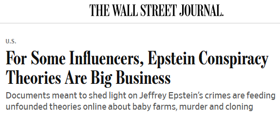 尽管这些播客主持人与平台之间存在差异,但它们有一点是共同的:对爱泼斯坦事件的强烈关注正在为它们带来流量,而流量可以转化为广告、订阅收入,在某些情况下还包括周边商品销售。在如此拥挤的网络市场中,说法越耸人听闻越好:这些报道往往还会附带“内容警告”,提示含有图像化内容。