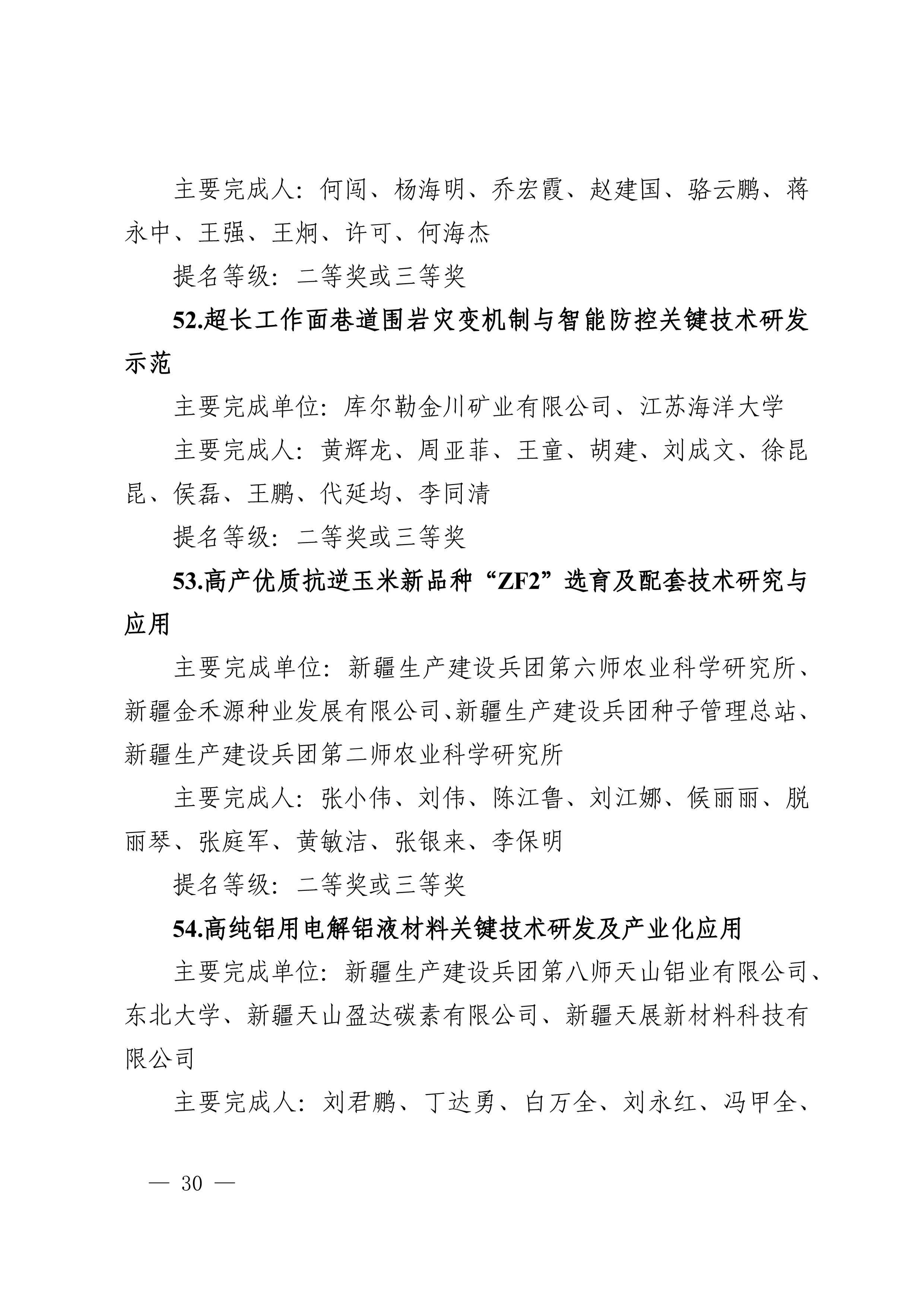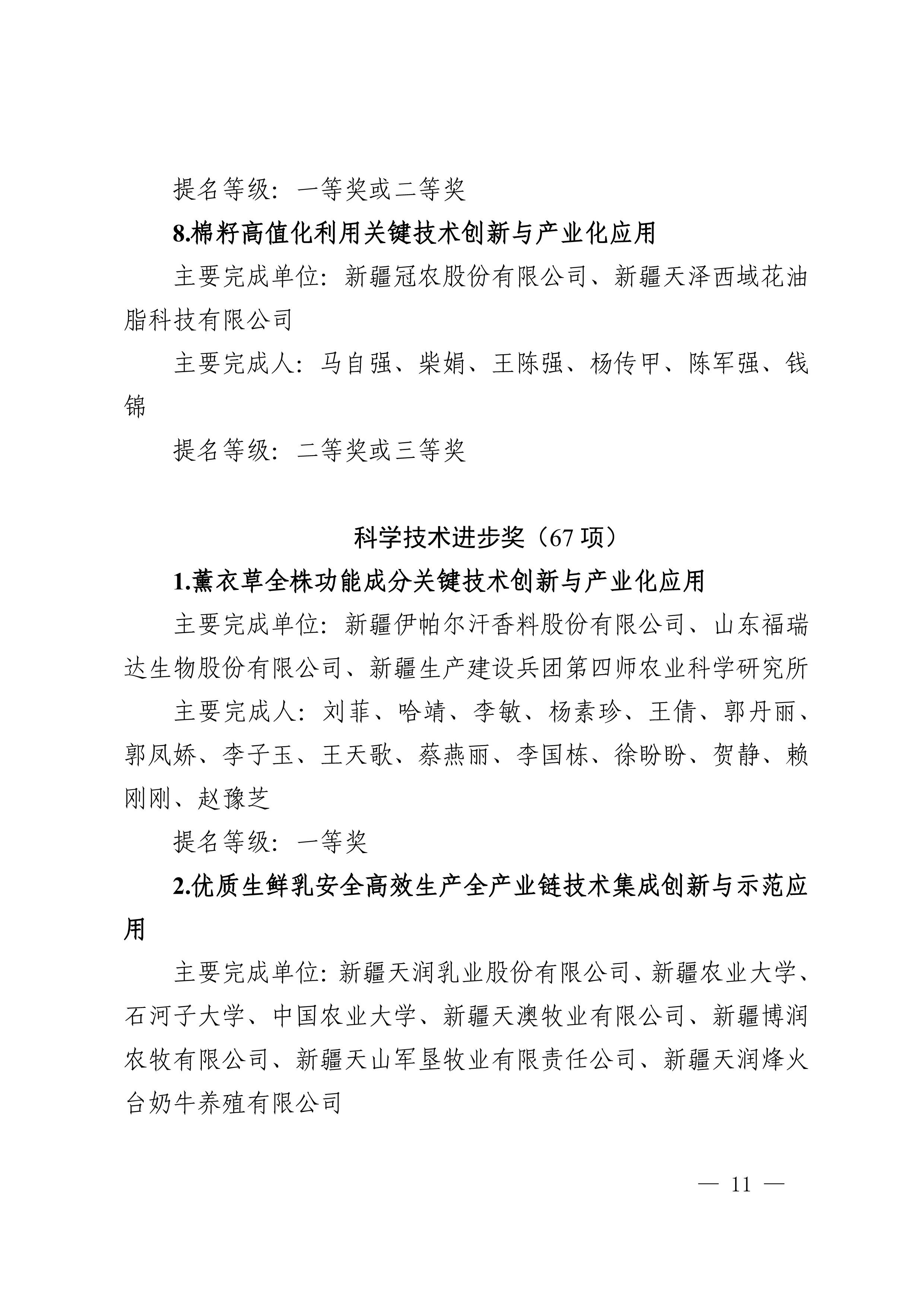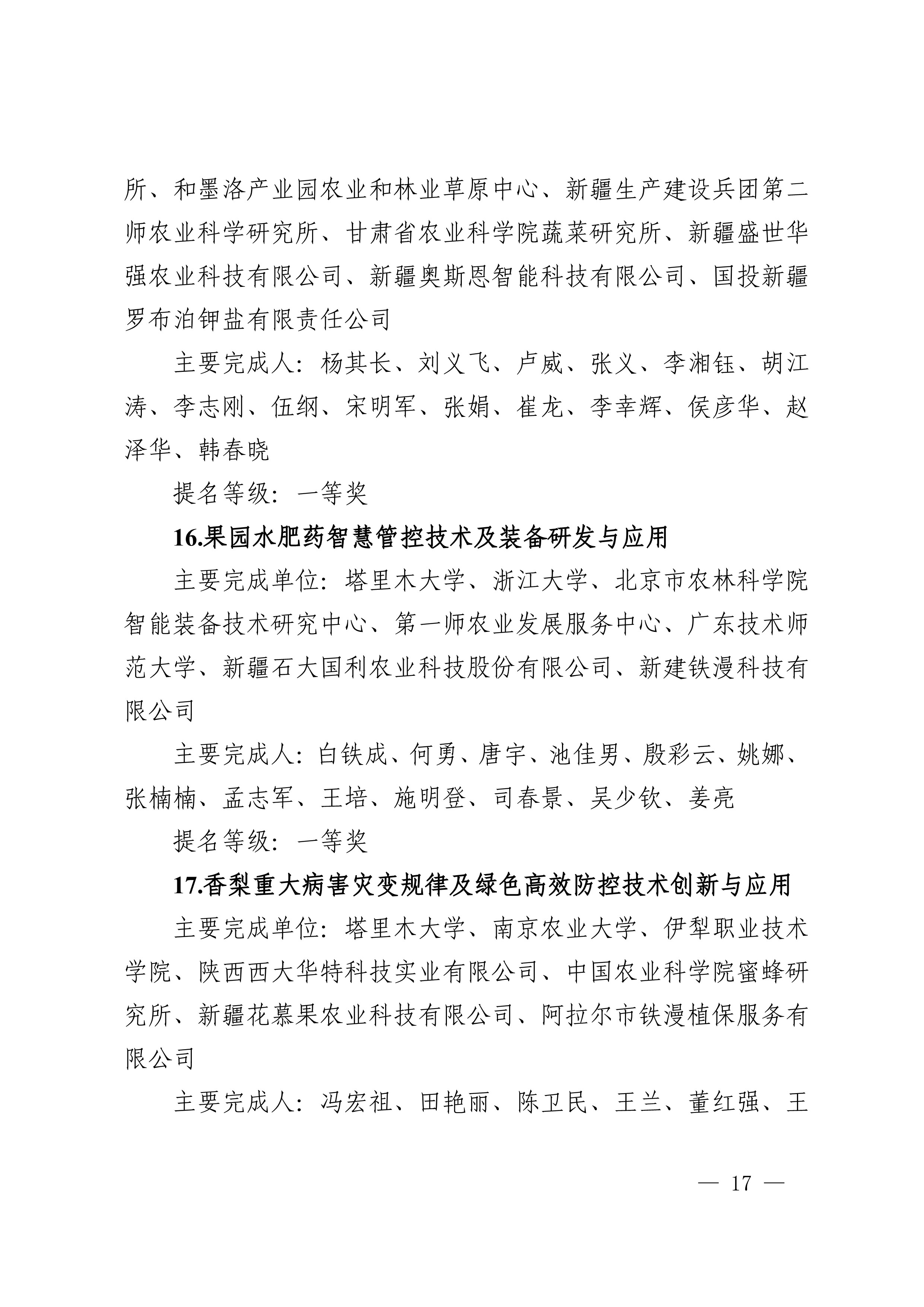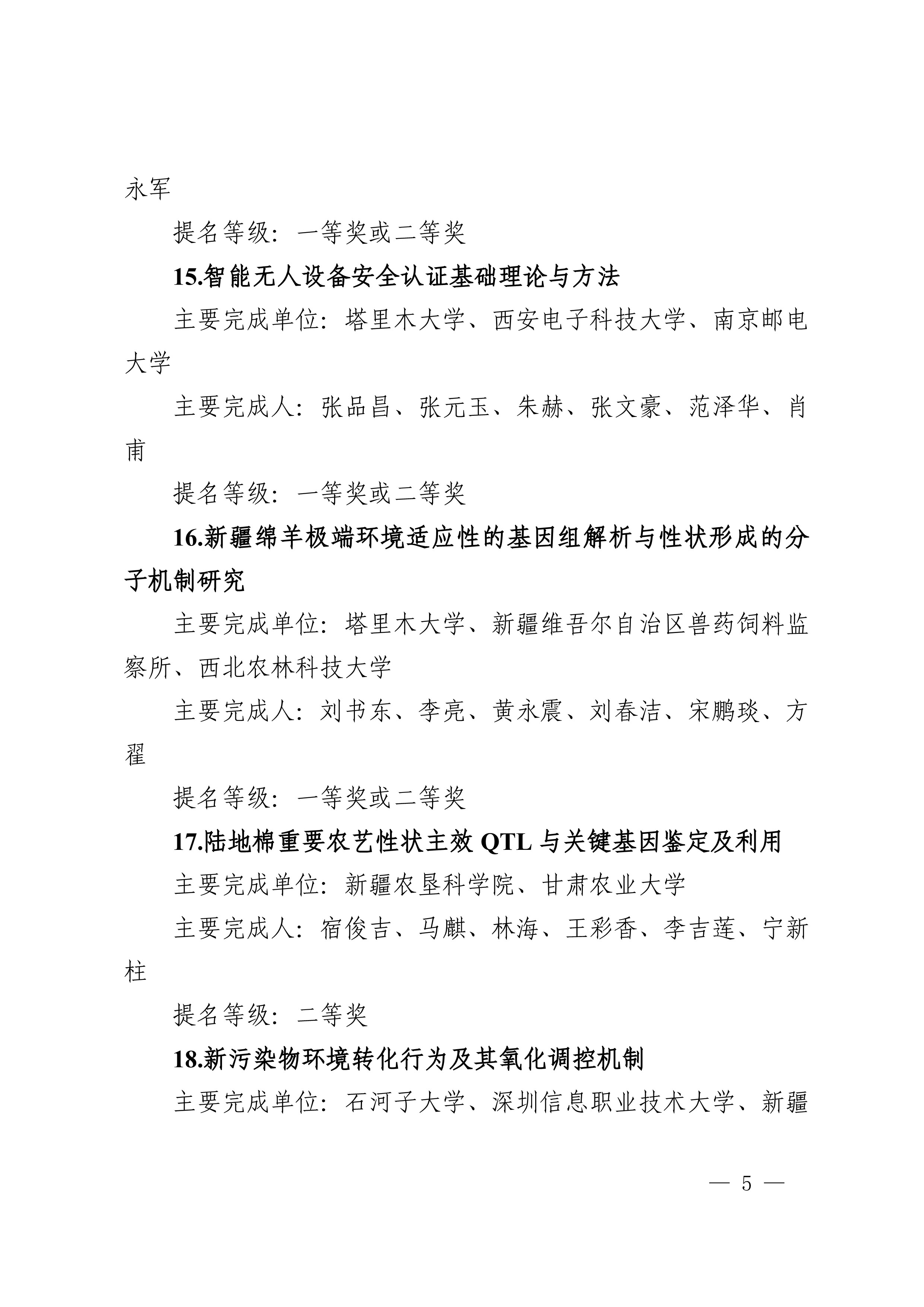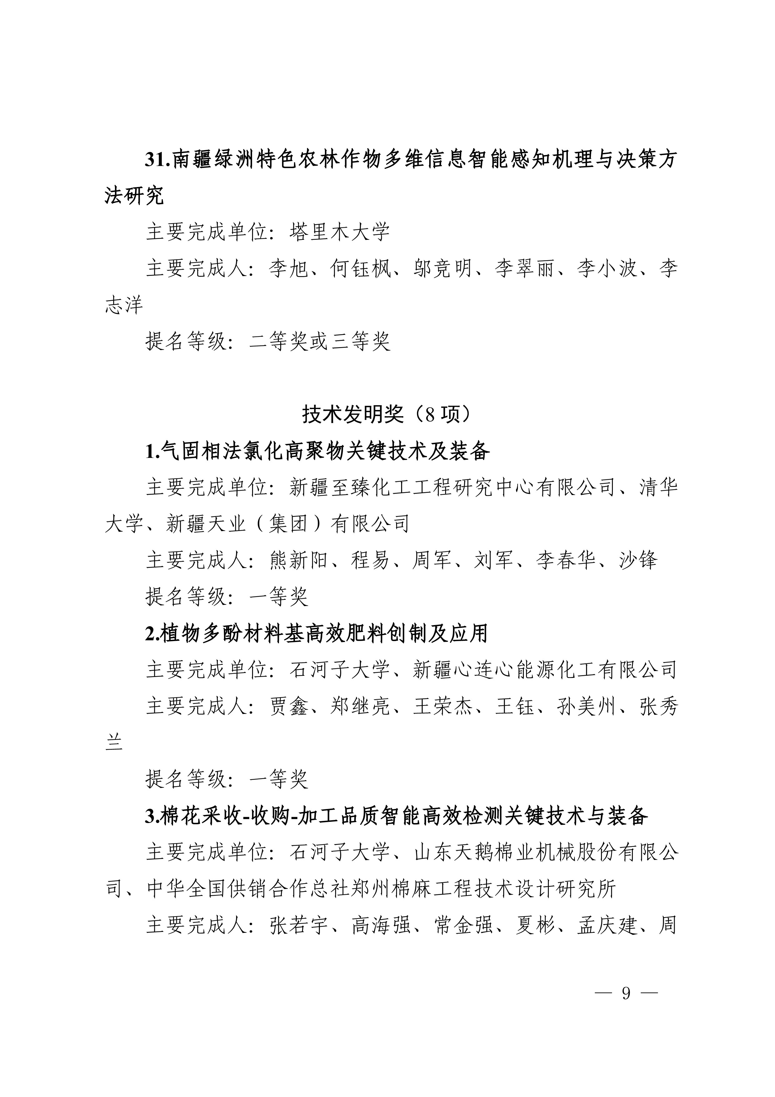 2025年度兵团科学技术奖提名工作已结束,共收到有关单位和专家提名的项目(人选)112项(人)。根据《新疆生产建设兵团科学技术奖励办法》及实施细则有关规定,对形式审查合格予以受理的108项(人)进行公示,其中最高科学技术奖2人、自然科学奖31项、技术发明奖8项、科学技术进步奖67项。