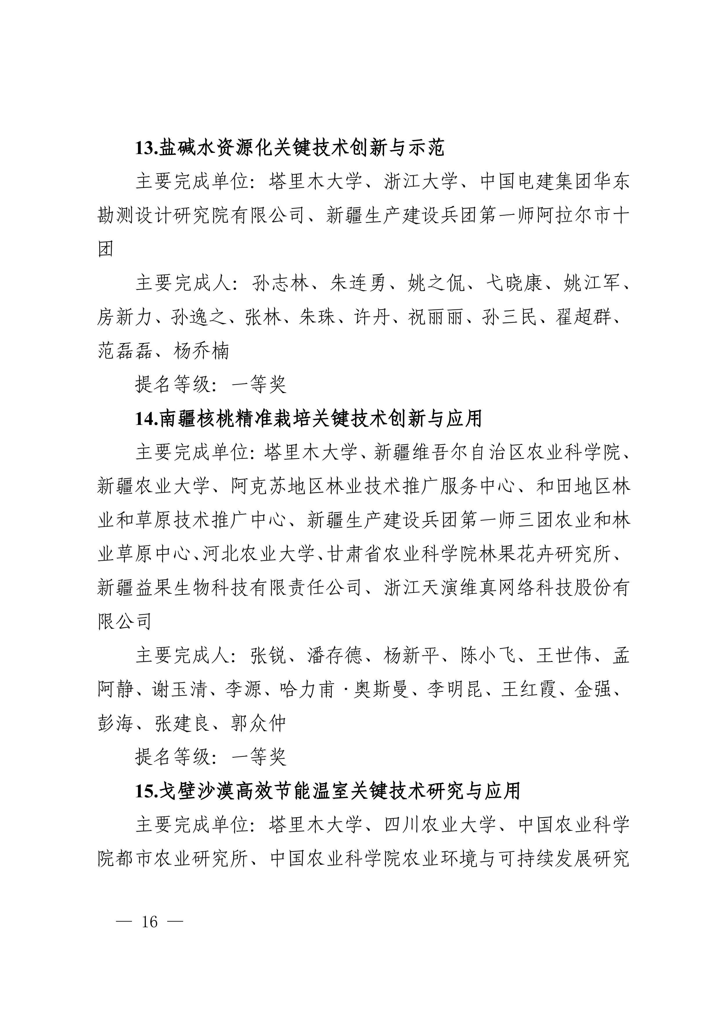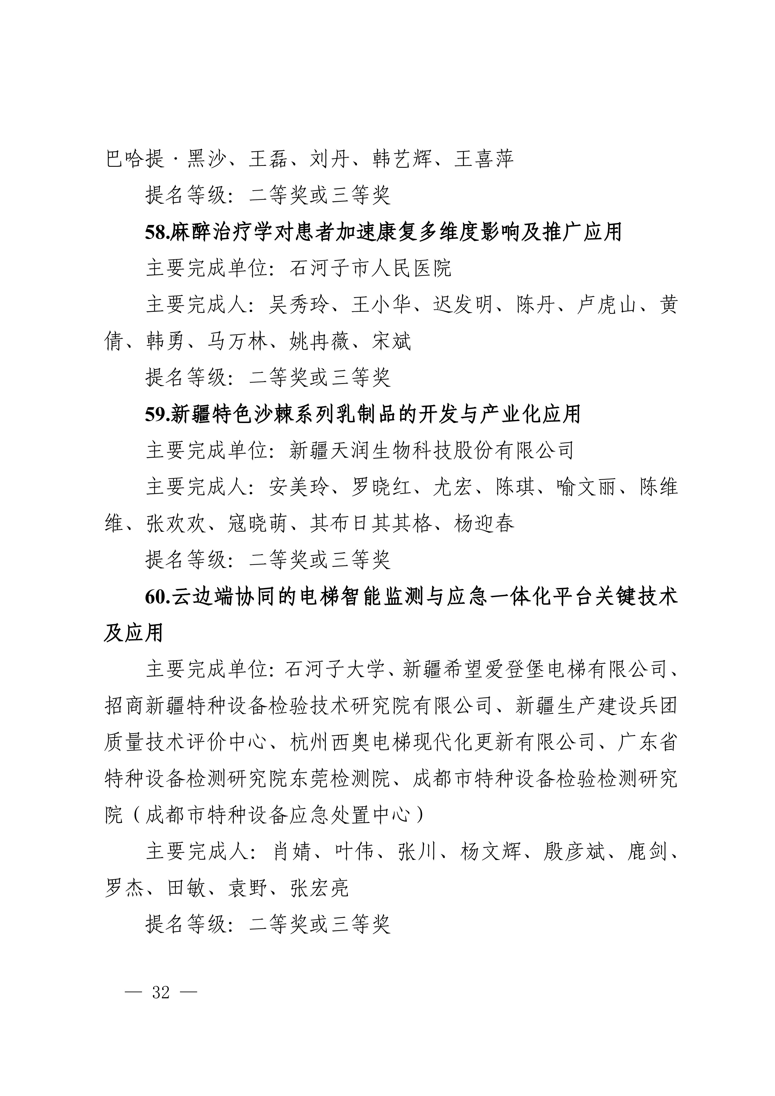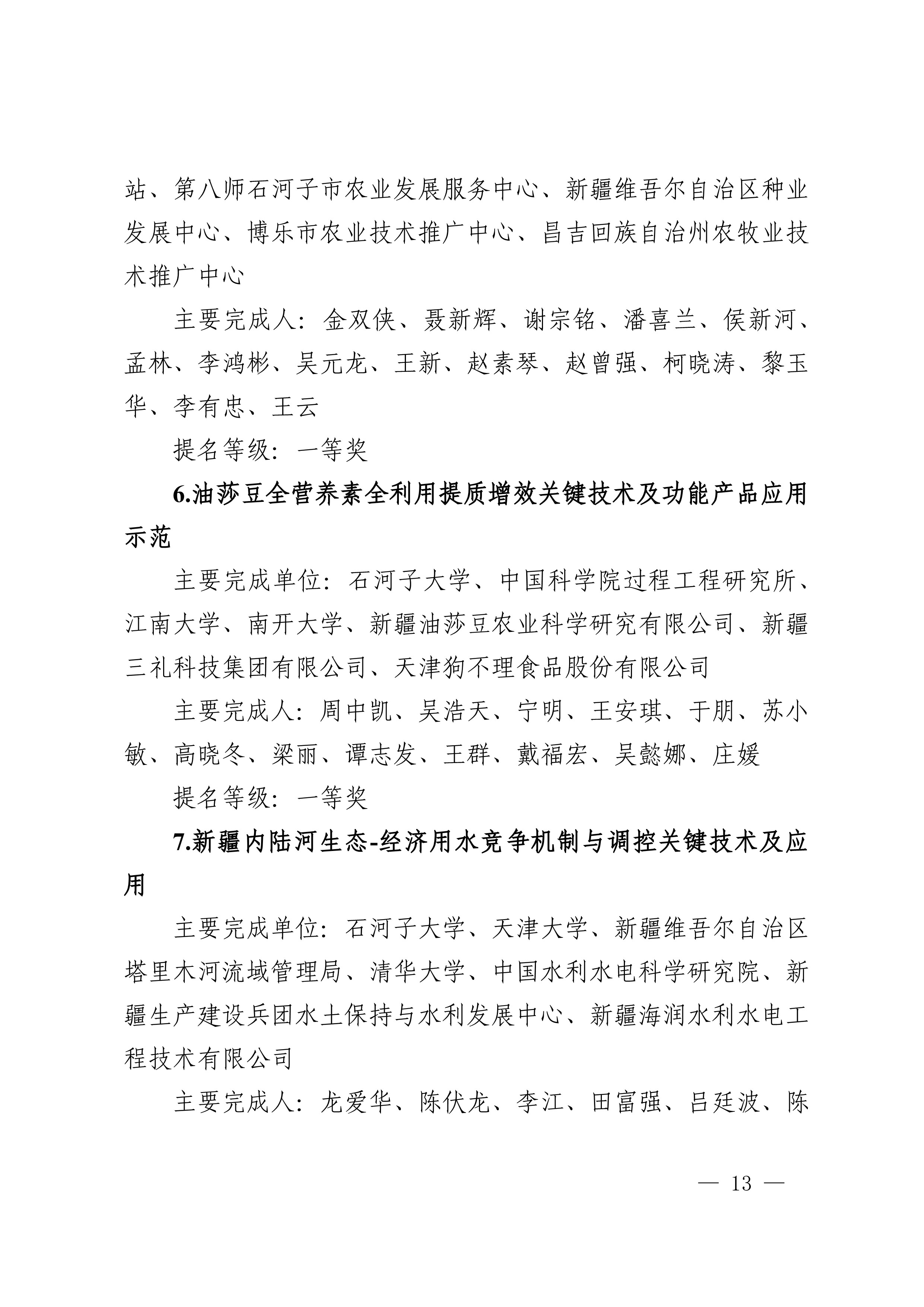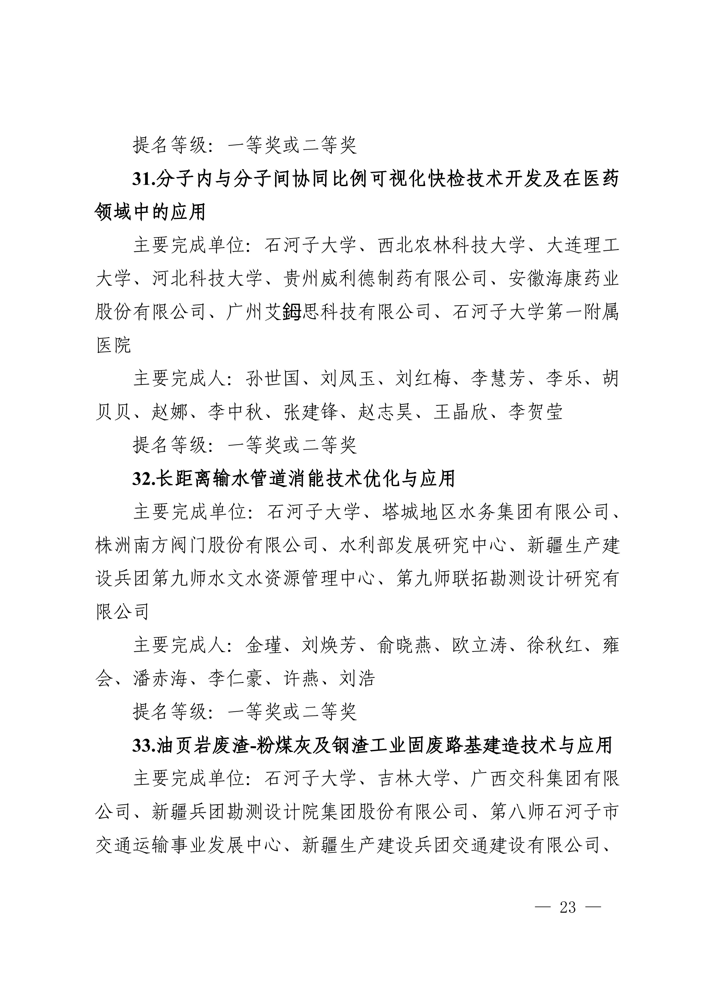 2025年度兵团科学技术奖提名工作已结束,共收到有关单位和专家提名的项目(人选)112项(人)。根据《新疆生产建设兵团科学技术奖励办法》及实施细则有关规定,对形式审查合格予以受理的108项(人)进行公示,其中最高科学技术奖2人、自然科学奖31项、技术发明奖8项、科学技术进步奖67项。