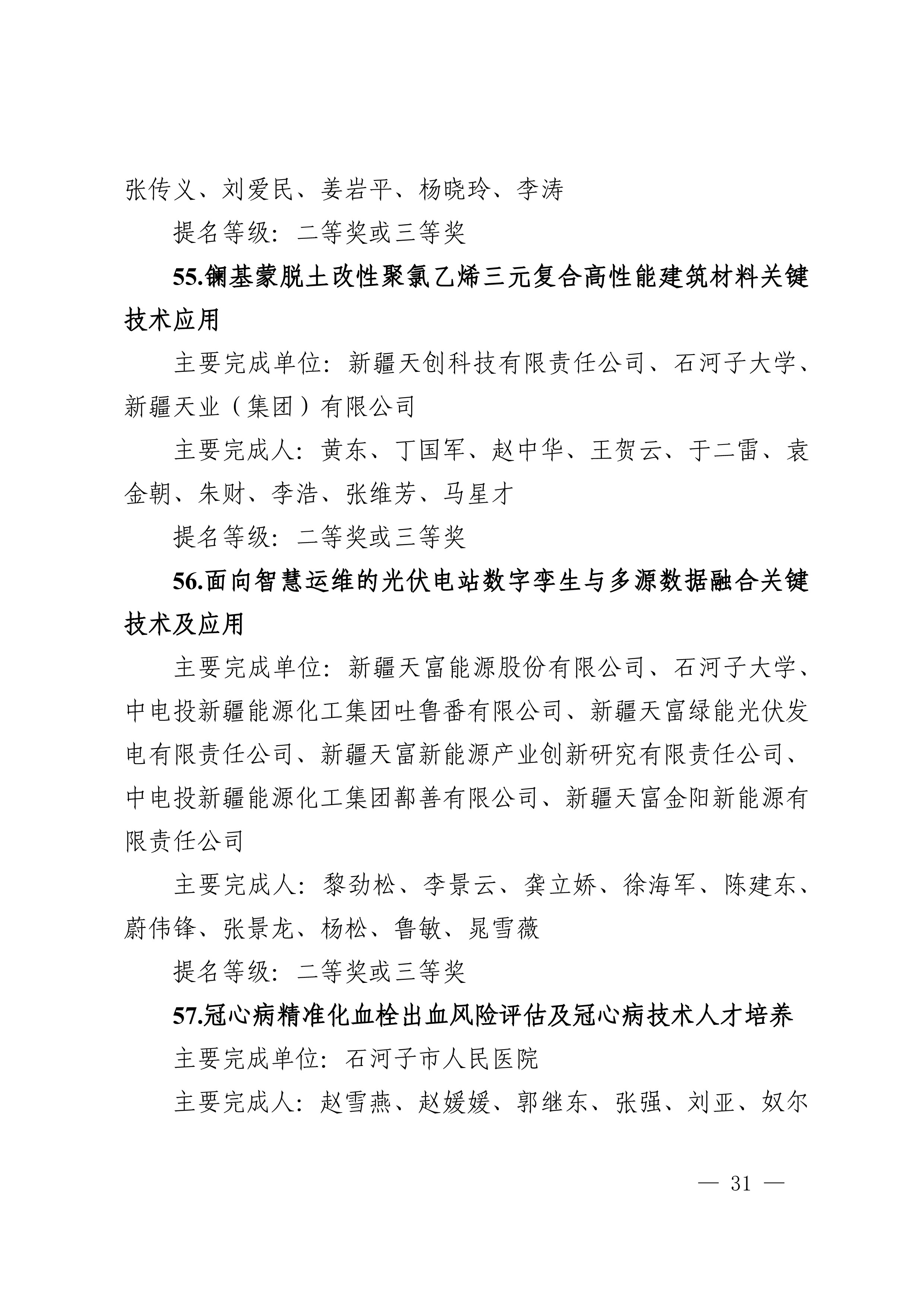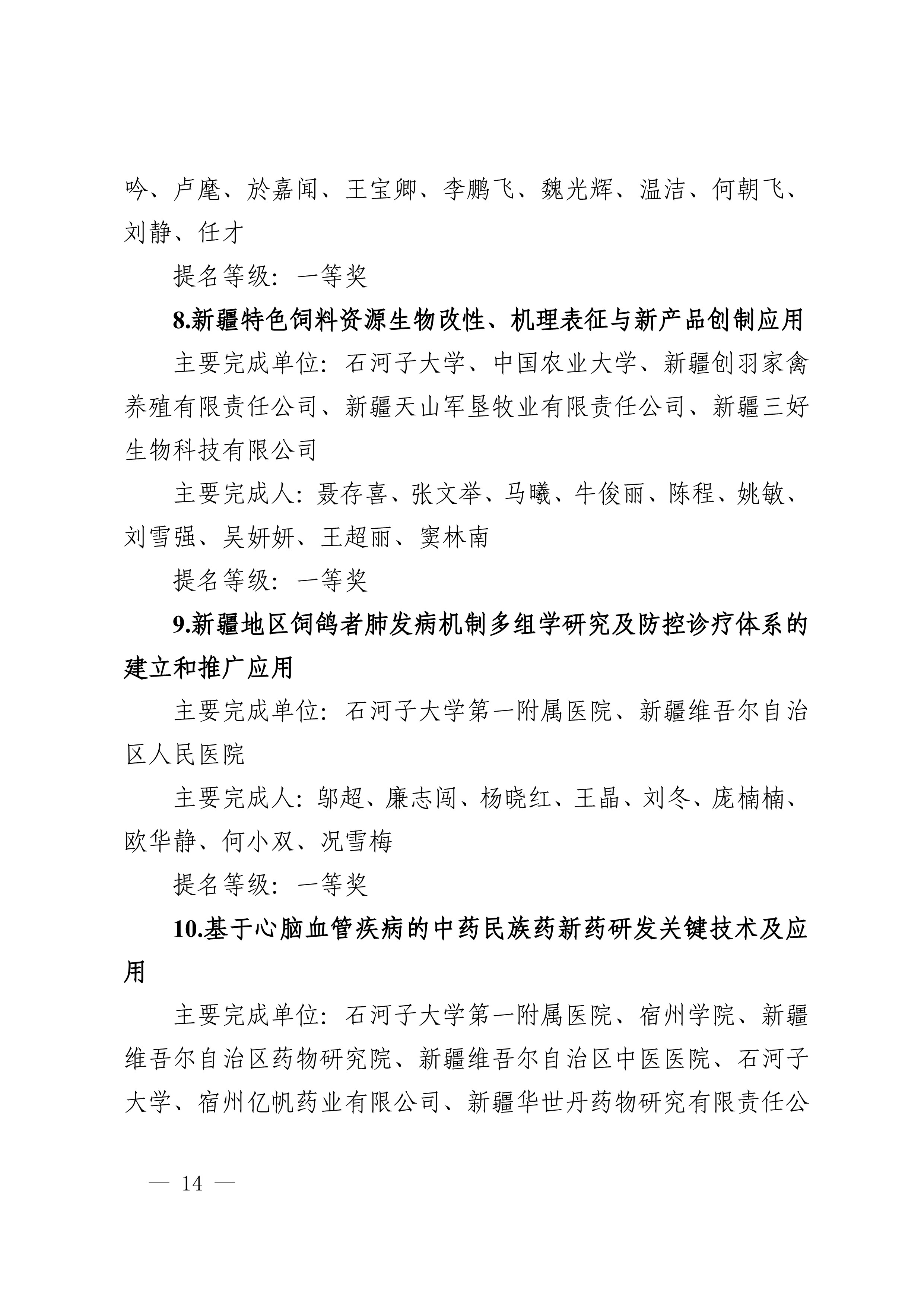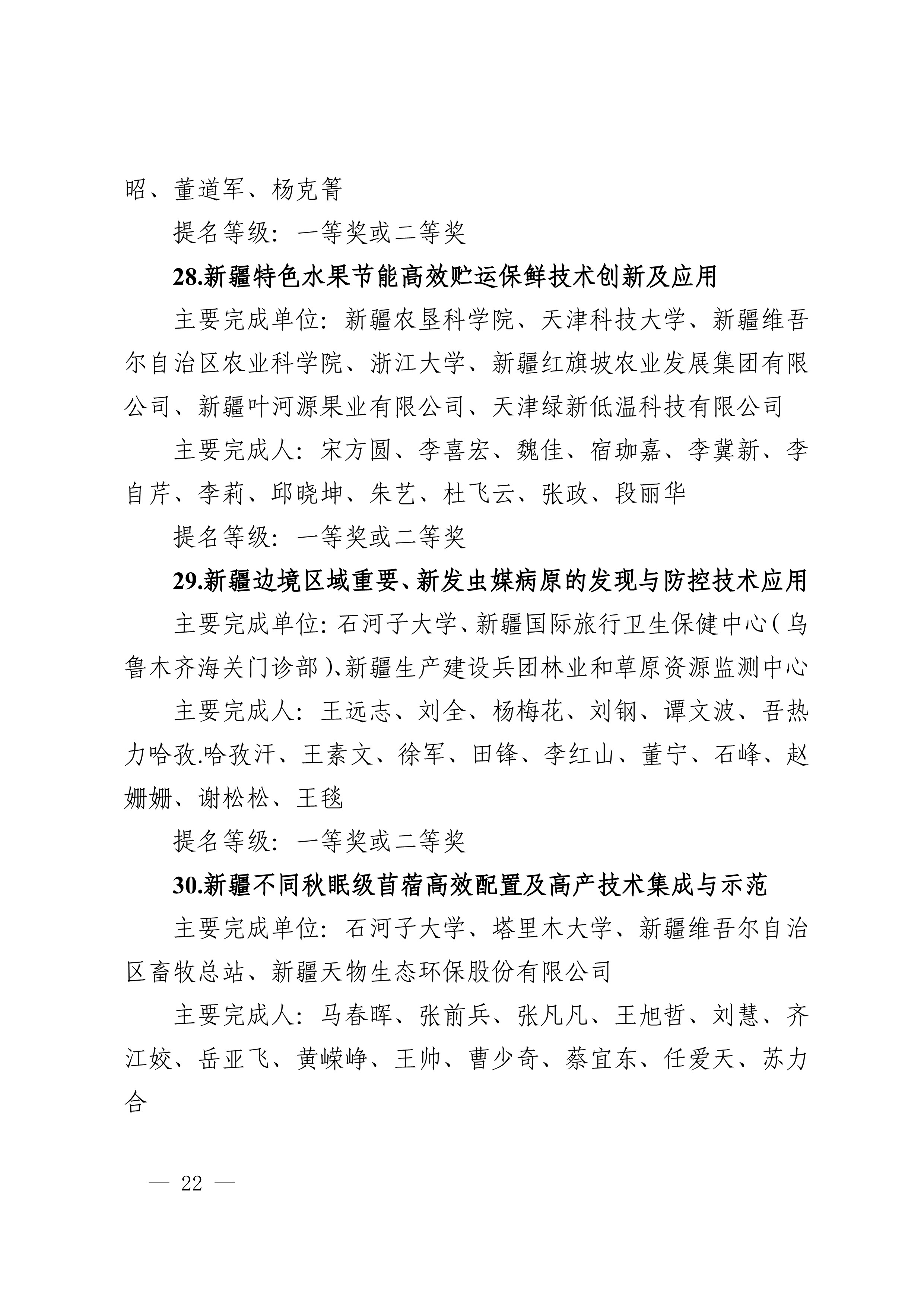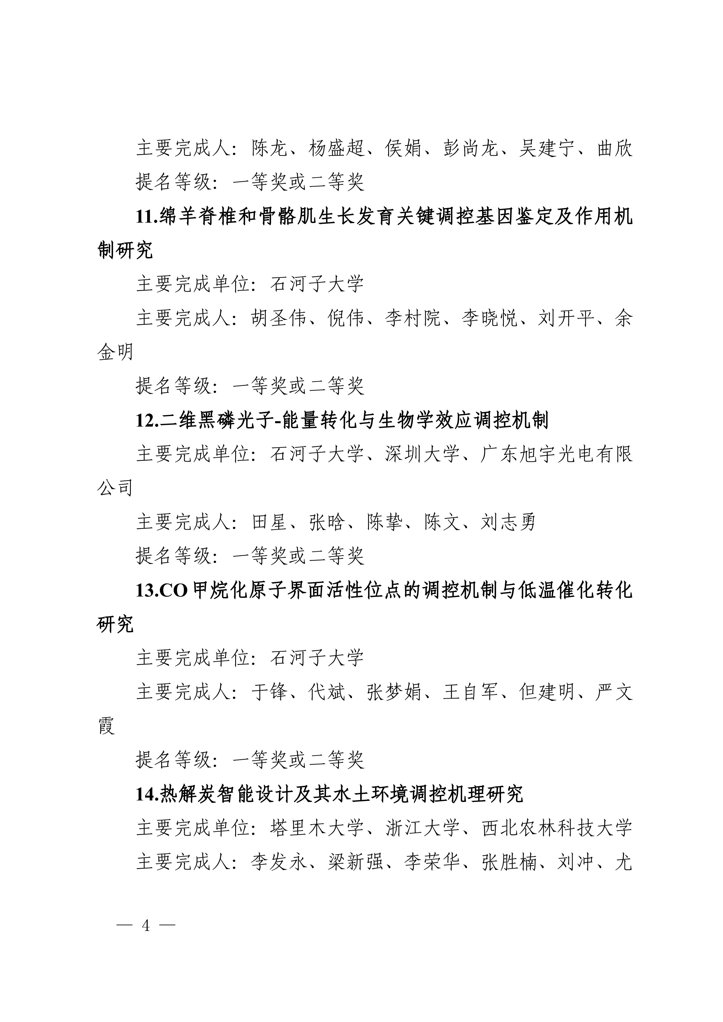 2025年度兵团科学技术奖提名工作已结束,共收到有关单位和专家提名的项目(人选)112项(人)。根据《新疆生产建设兵团科学技术奖励办法》及实施细则有关规定,对形式审查合格予以受理的108项(人)进行公示,其中最高科学技术奖2人、自然科学奖31项、技术发明奖8项、科学技术进步奖67项。