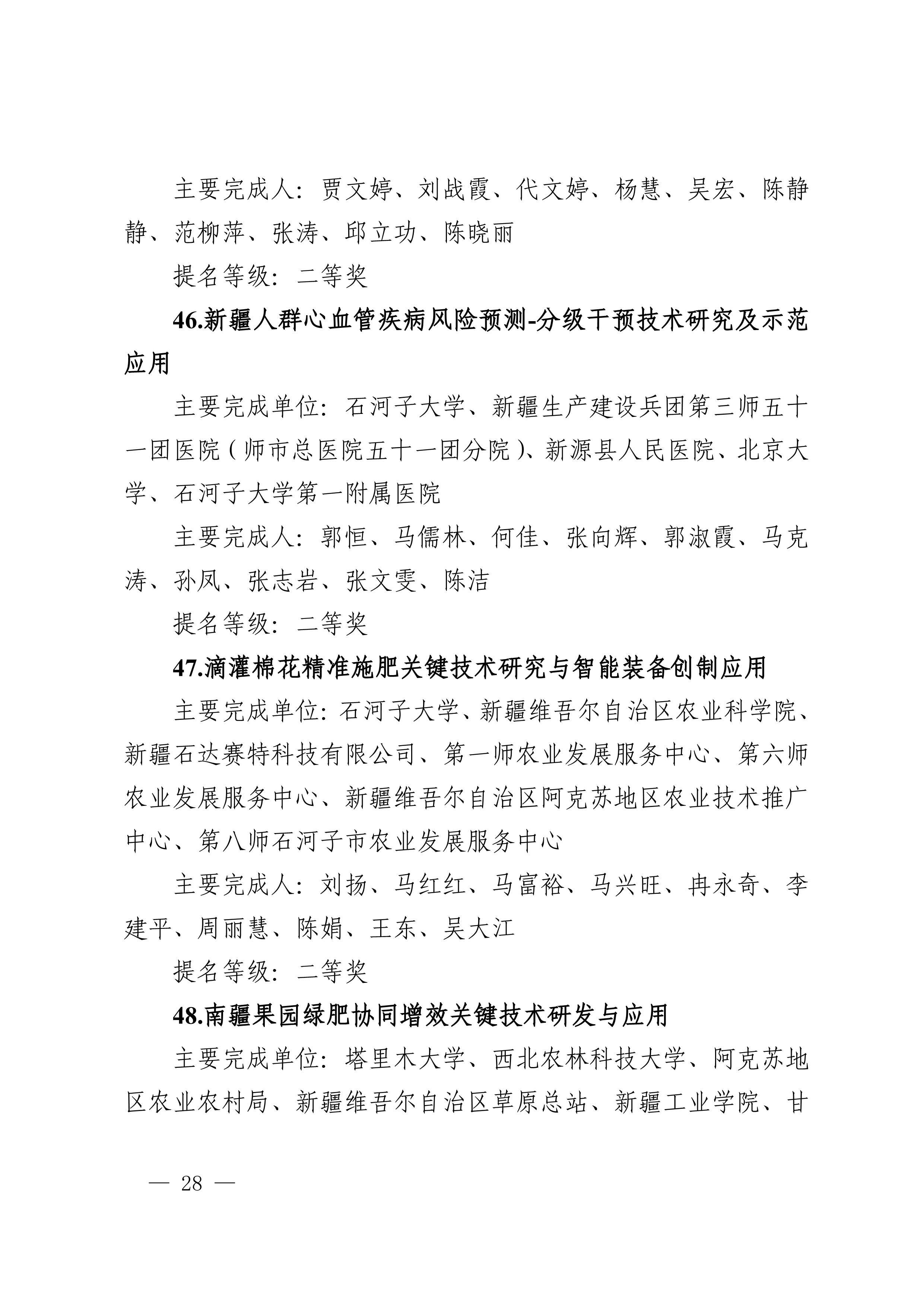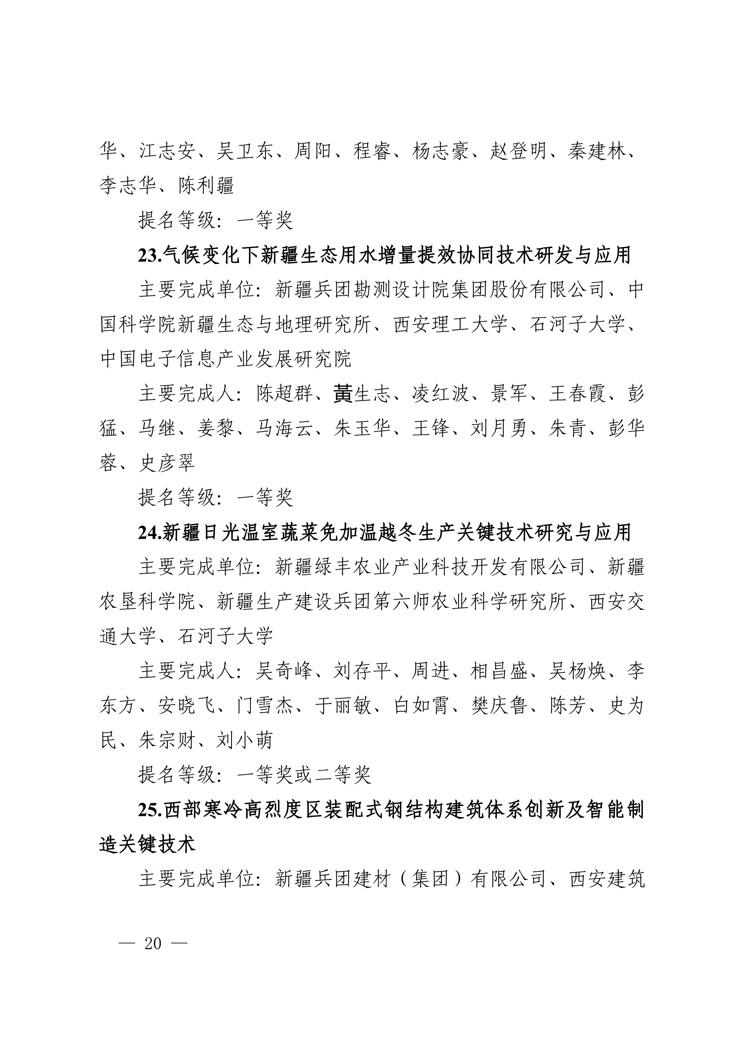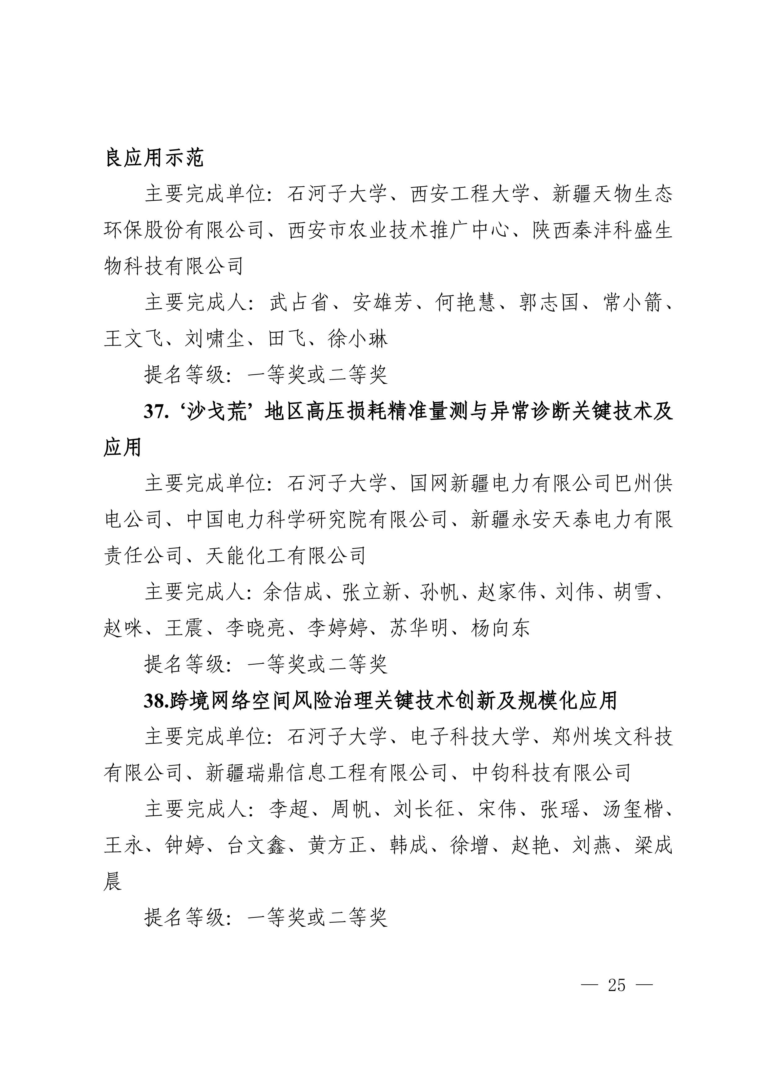2025年度兵团科学技术奖受理项目公示