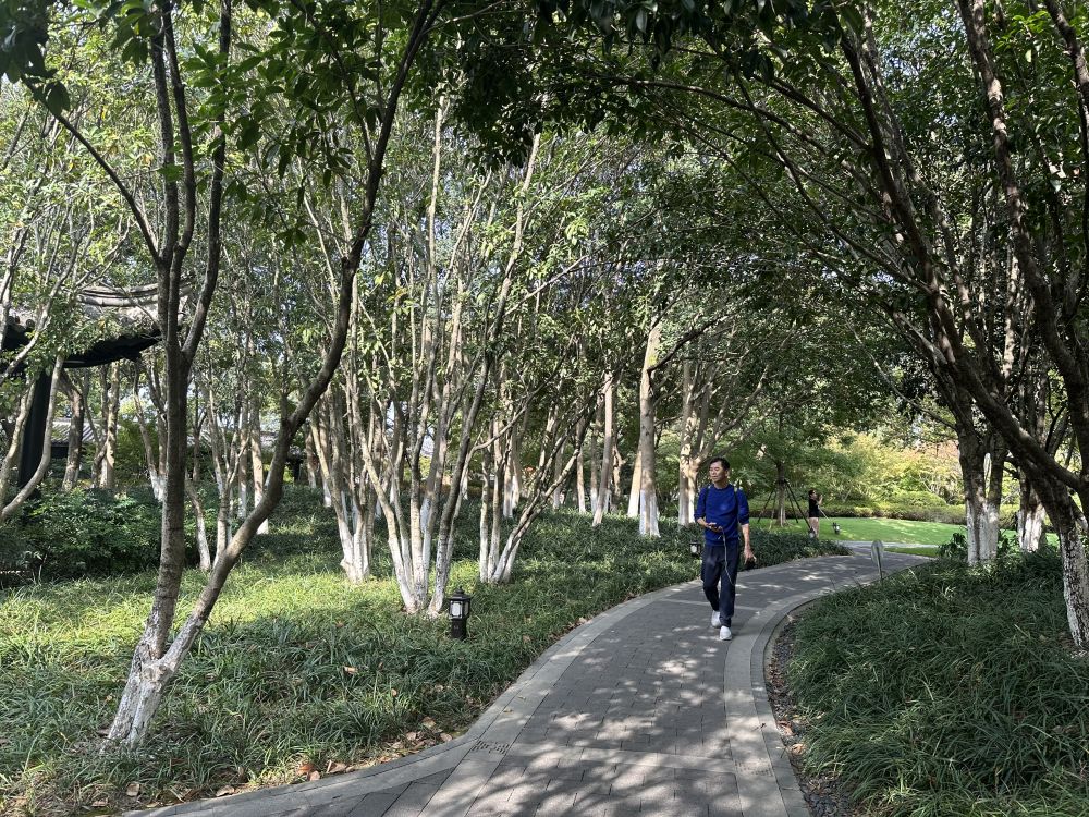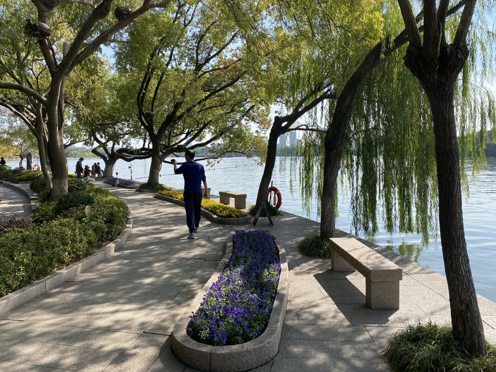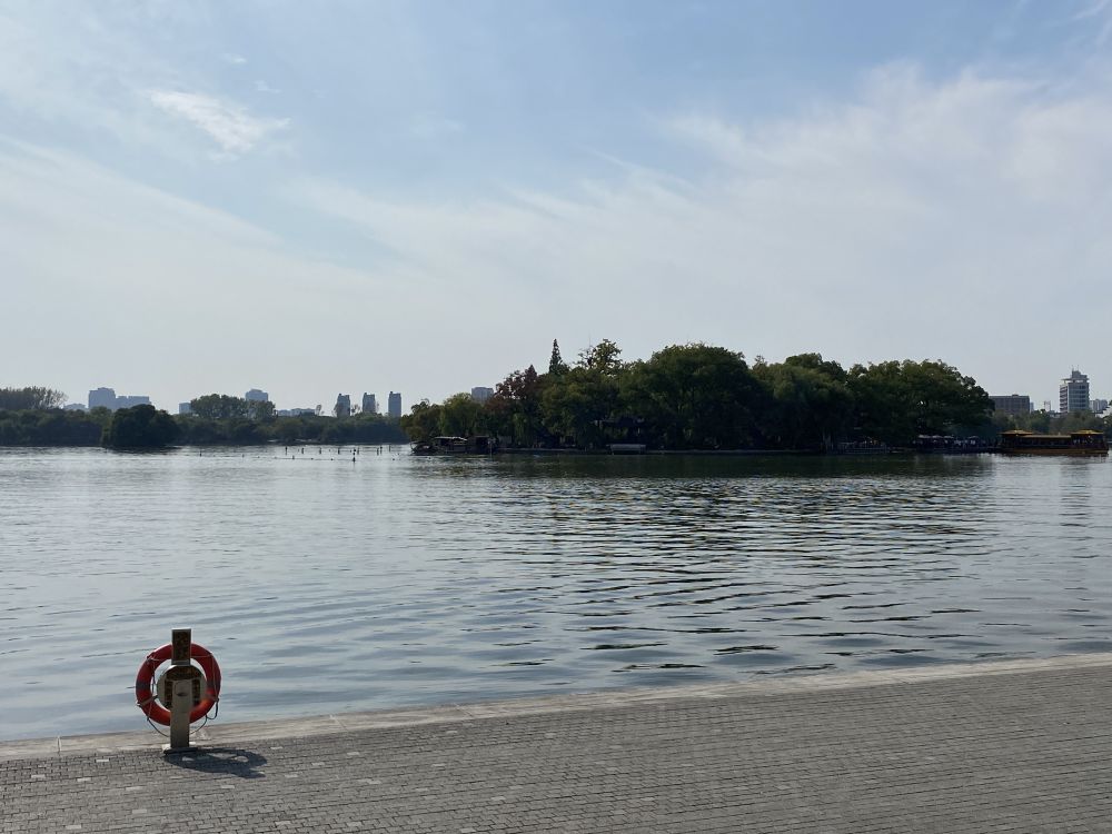 午饭后,我们沿着湖畔漫步,绕湖走了半圈。