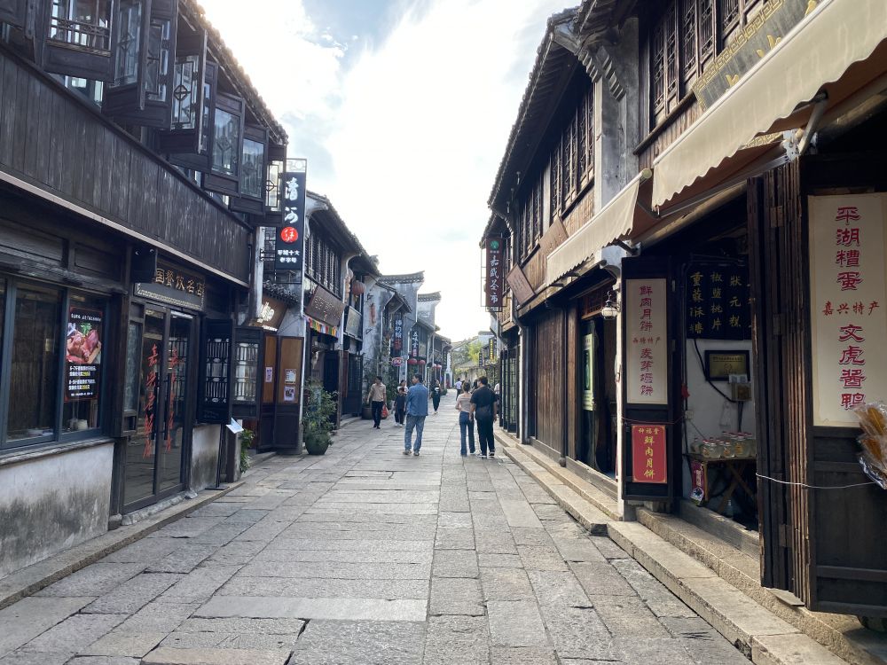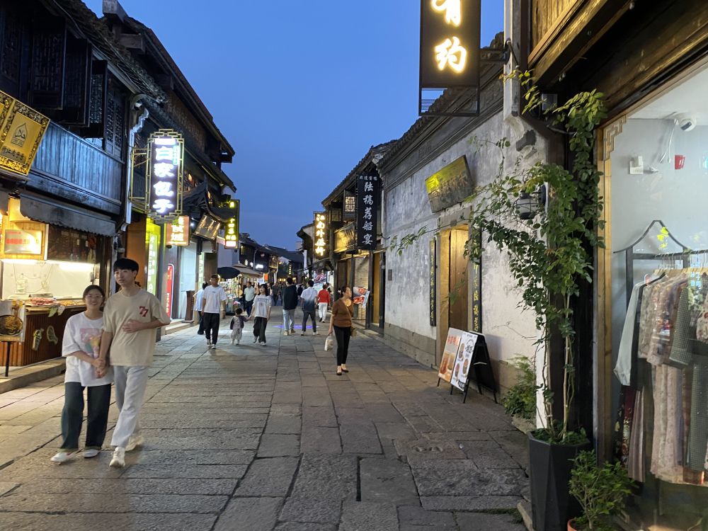 游客可沿着石板街漫步,品尝嘉兴特色小吃,或在河边茶馆小坐,尽情感受江南水乡悠闲宁静的生活氛围。