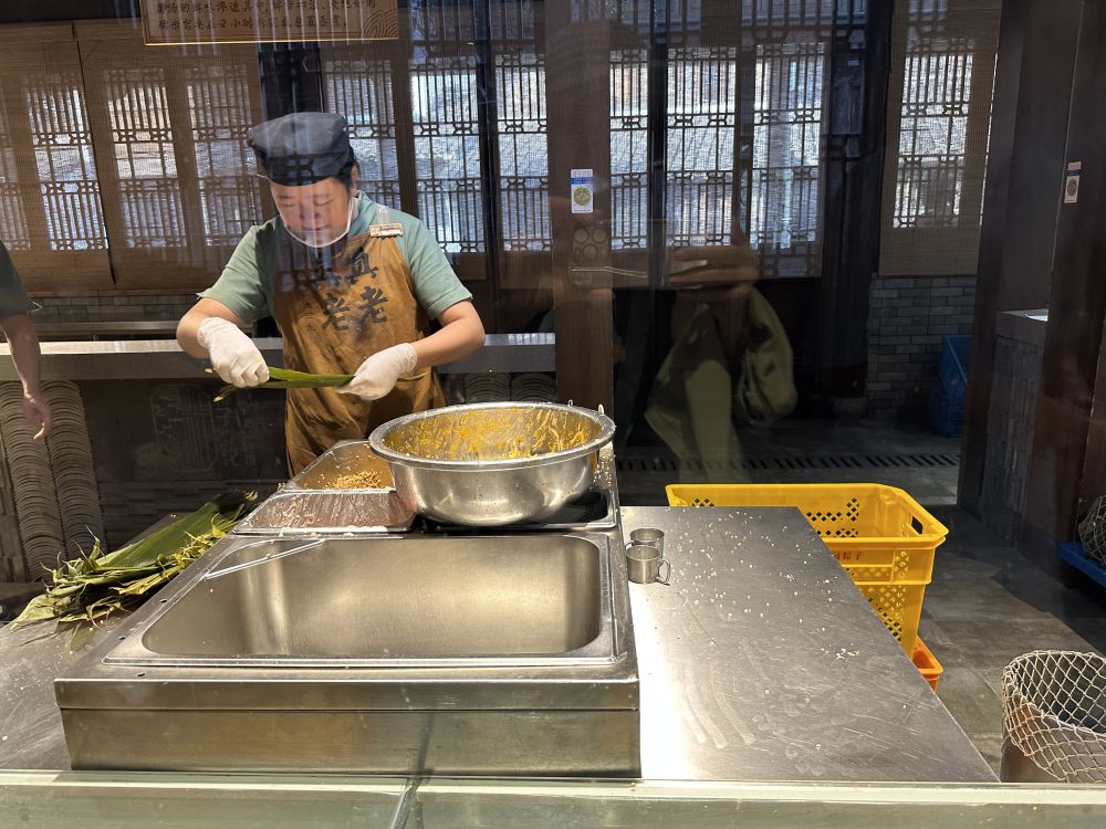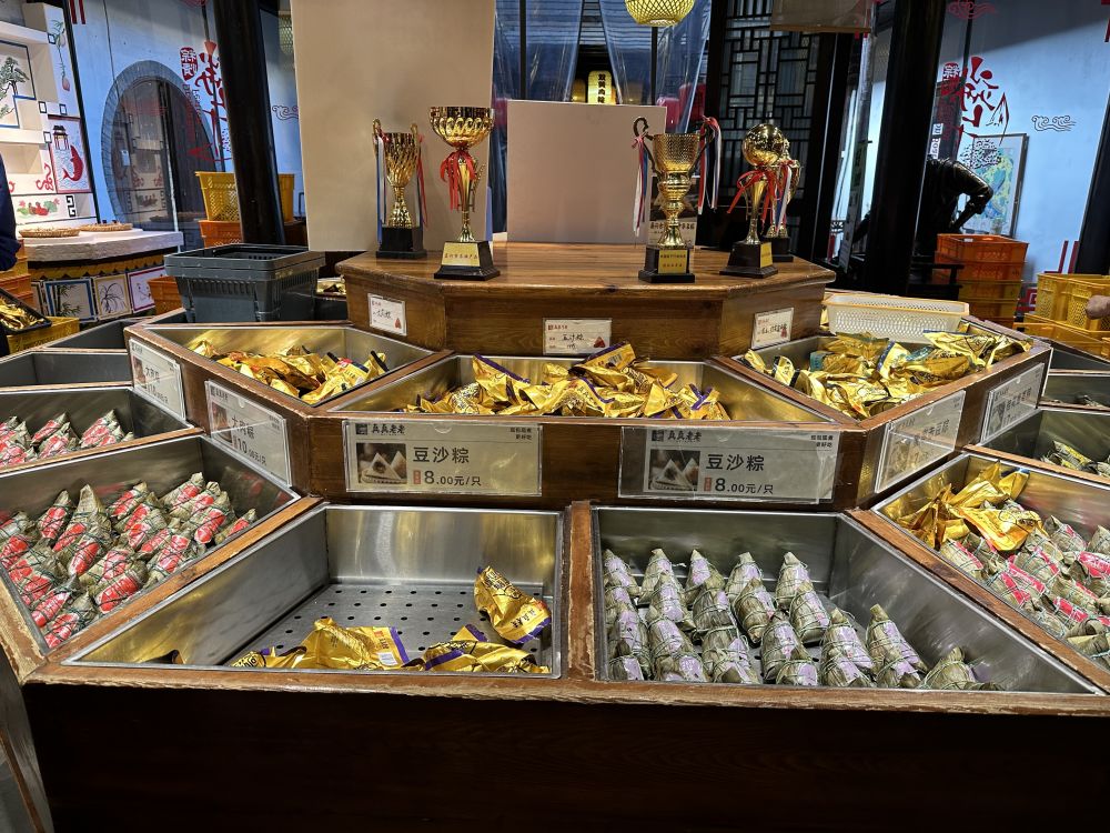 “真真老老”粽子是博物馆里的招牌,其中“传人粽”系列尤为著名。与普通酱油粽不同,传人粽采用高汤浸泡糯米,米粒洁白,口感鲜美,香味浓郁。