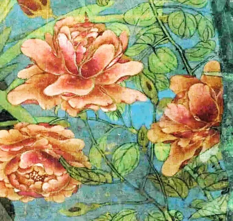 赵昌的笔触,那叫一个“细”。花瓣的纹理、枝干的转折,连水仙叶子的脉络都画得清清楚楚,像用显微镜观察似的。但他又不完全写实,太湖石上方的花枝,像装饰图案一样环绕,带着点“平面壁纸”的趣味。这种“半写实半装饰”的玩法,搁现在叫“混搭风”,在宋朝,这叫“创新”。