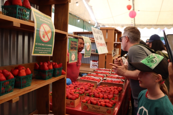 过去的周末(14、15日),尔湾市(Irvine)田中农场(Tanaka Farm)举办第86届年度“春季开放日”,供居民采摘新鲜草莓和有机蔬菜,以及乘坐马车、购买农产品、参加抽奖、品尝草莓美食。