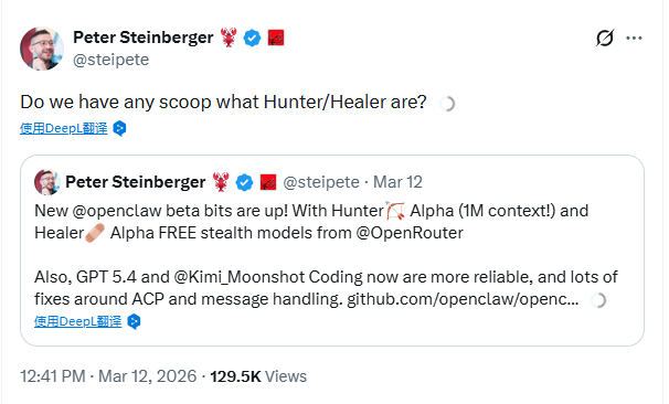 近日一款名为Hunter Alpha的AI模型在开发者平台OpenRouter匿名上线,具备逾1万亿参数规模及100万token上下文窗口,发布后总调用量迅速登顶。因参数规格与外界流传的DeepSeek V4信息高度吻合,一度引发大规模猜测,就连龙虾之父Peter Steinberger也在X上发帖询问,有没有人知道模型的具体细节。