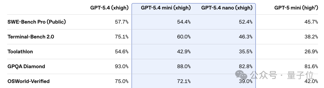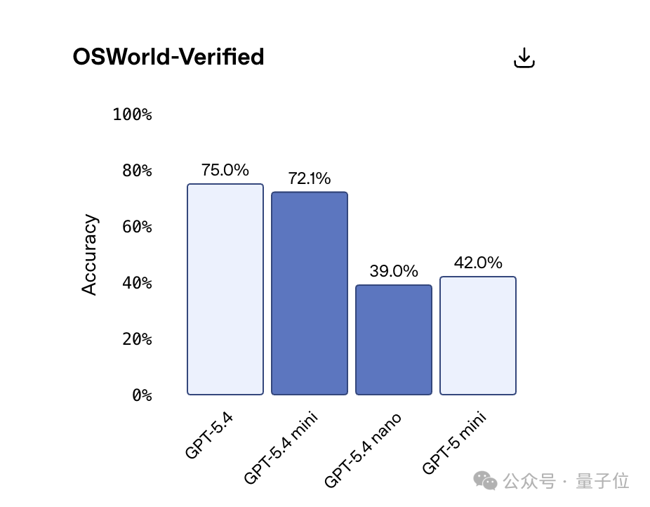 在OSWorld-Verified测试中,它的表现几乎接近满血版GPT?5.4,同时明显优于GPT?5 mini。