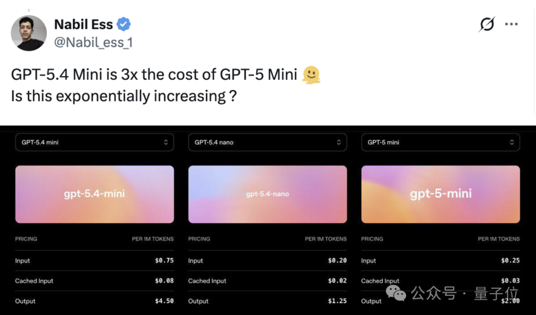 虽然OpenAI的博客表示,在输出tokens 上,性能近似的mini版本比GPT?5.4便宜三倍,nano版本则几乎便宜十二倍。
