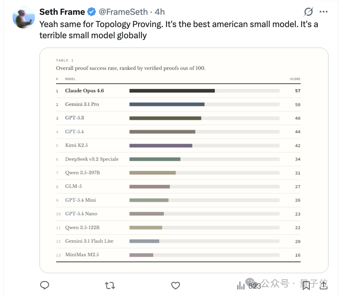 在同步的拓扑证明中,新出的mini和nano模型在全球范围内表现也只是中规中矩,分别排行第九第十,不如早前发布的Kimi、Qwen、DeepSeek等模型。(OpenAI后来居下这一块)