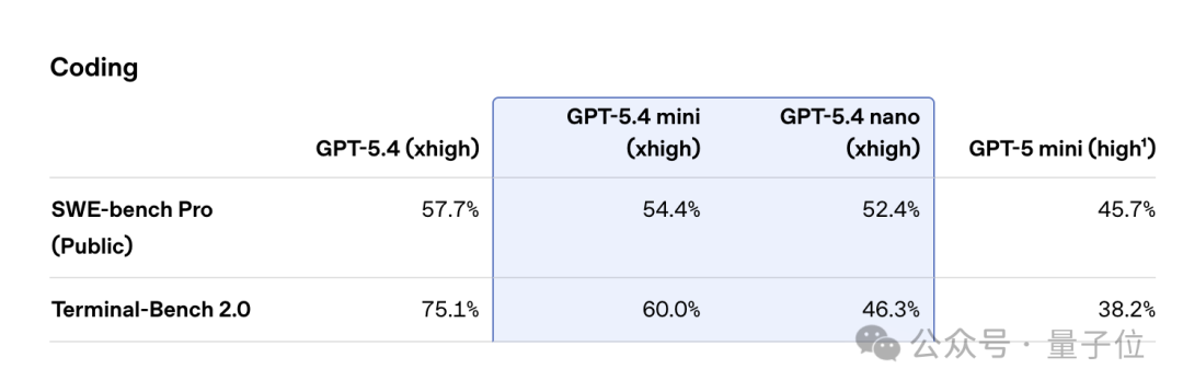 在实际评测中,mini和nano主要是针对编程和Agent任务做了优化。