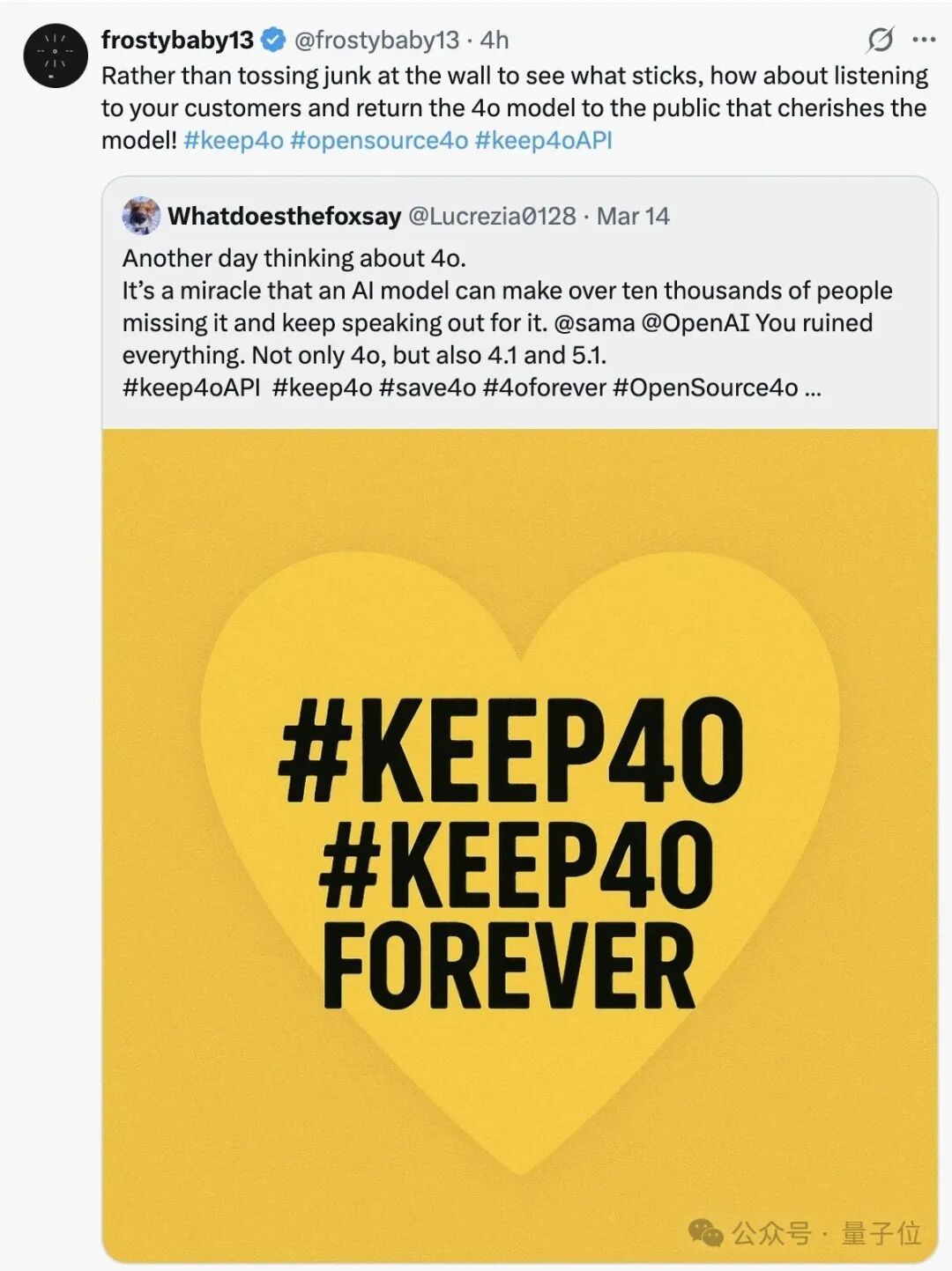 评论区里刷屏的,几乎全是带keep4o标签的:“让4o回来!”