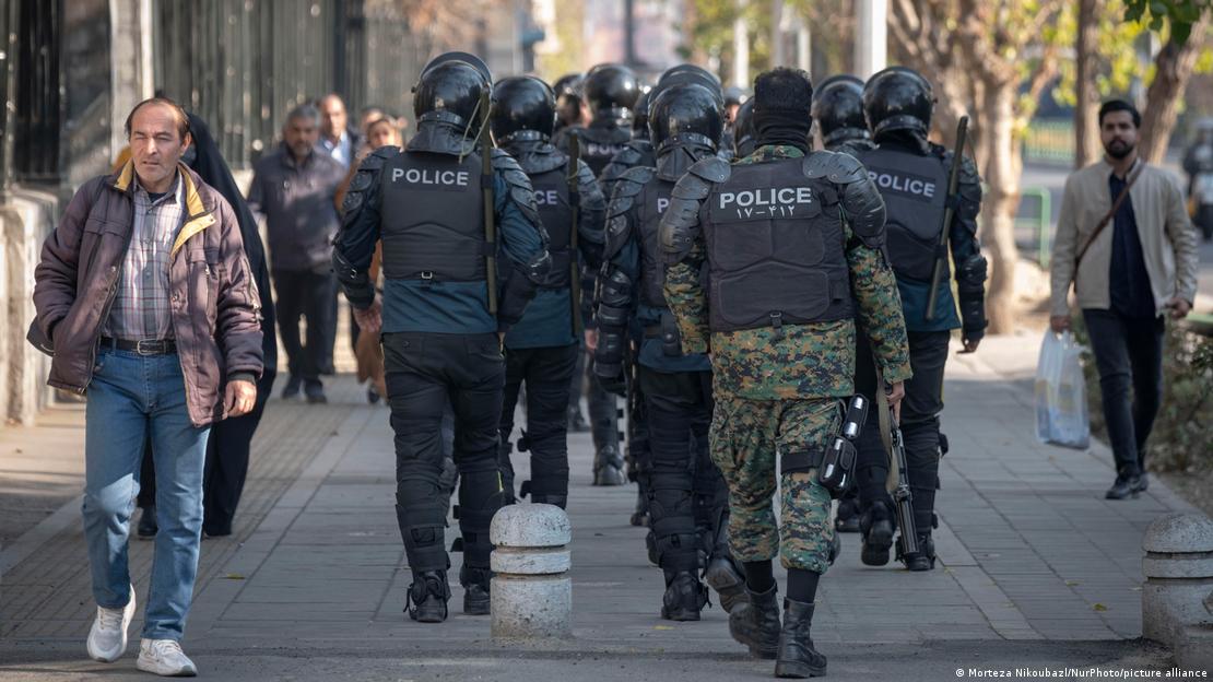 德黑兰街头的武装警察(2026年1月12日)图像来源: Morteza Nikoubazl/NurPhoto/picture alliance