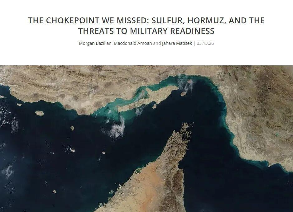 文章分析称,由于海上运输受阻,与石油加工密切相关的硫磺供应面临中断风险,而美国消耗的硫磺约90%用于生产硫酸,硫酸不仅维持着经济运转,也支撑着现代战争。