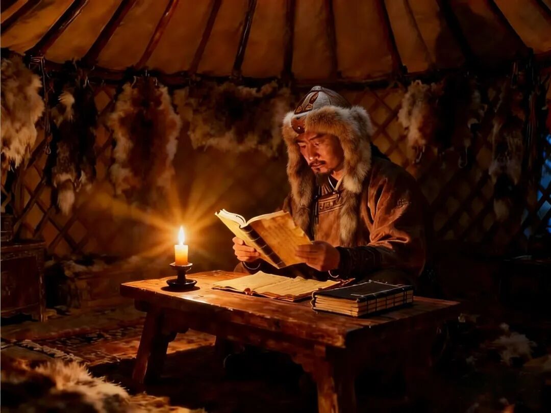 ▲契丹人夜读苏轼的书籍。(图片来源:AI 制图)