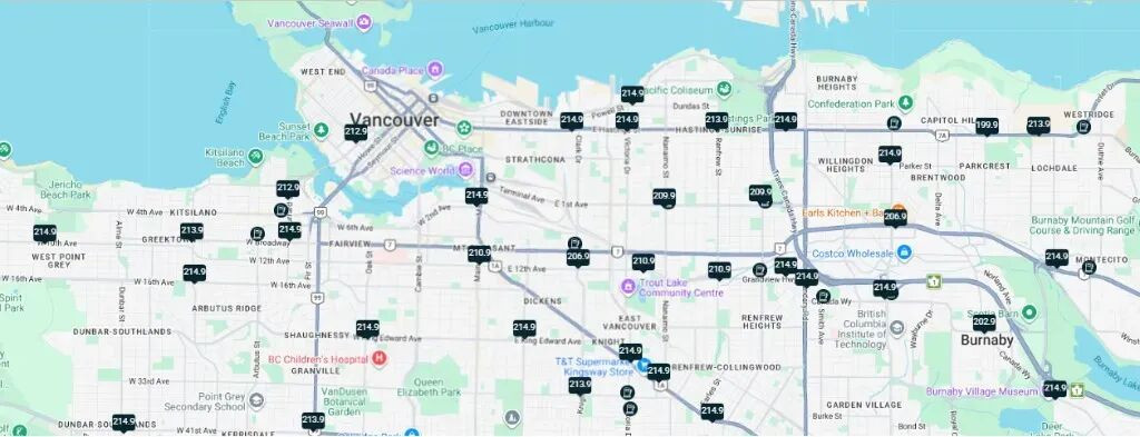 更扎心的是,这波涨价还不是全国统一“涨一点点”。不同省份之间的差距被再次拉大。像BC省这样的地方,一直都是油价高地,部分地区甚至直接突破2刀;而Alberta相对“友好”一些,大概在1.58加元左右。至于Quebec和Prince Edward Island,也都处在偏高区间。