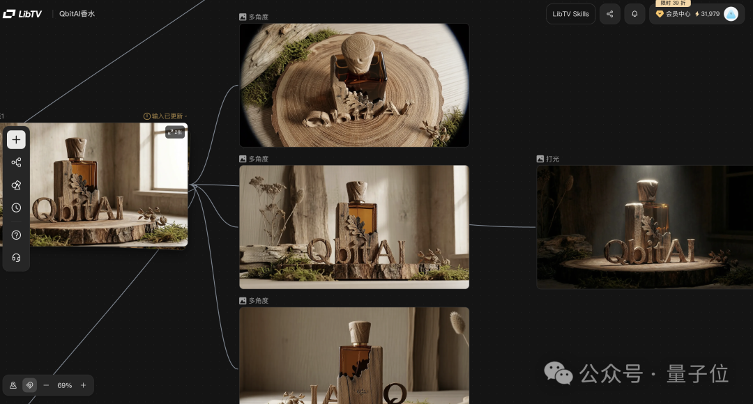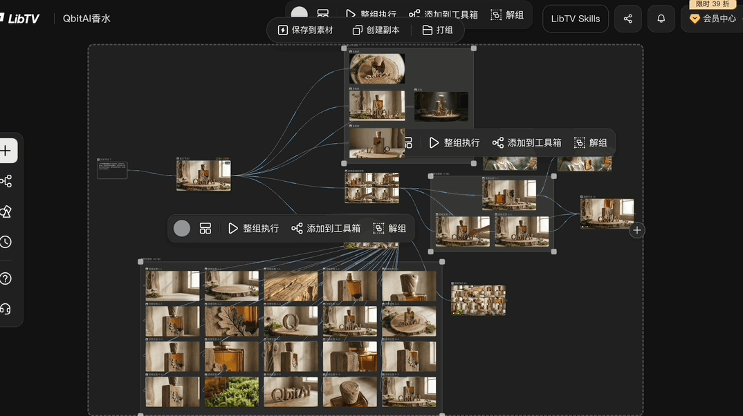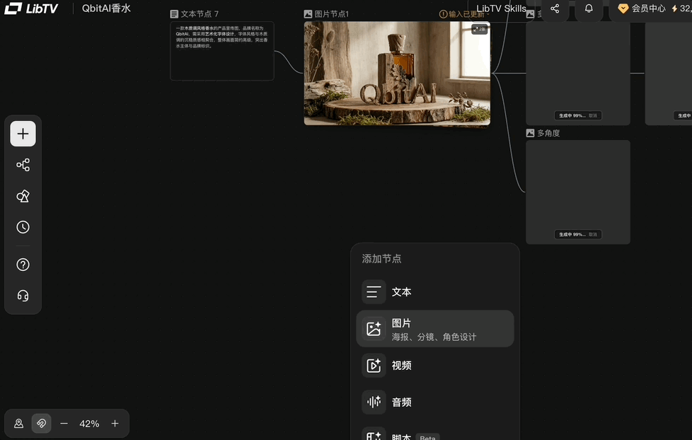 一句话概括 LibTV 的玩法:无限画布 + 节点工作流 + 独家专业功能 + 全网顶级模型,实现一站式创作体验。