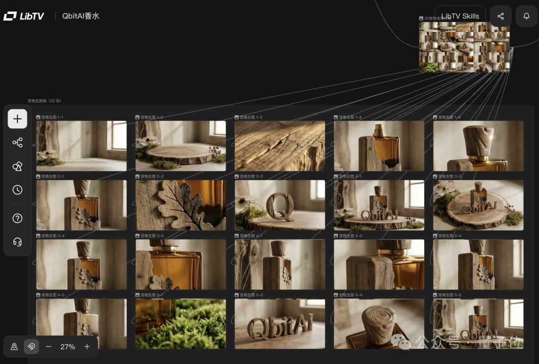 再来看看 LibTV 独有的 25 宫格连贯分镜的生成效果,同样支持一键切分成独立图片,直接就能用。