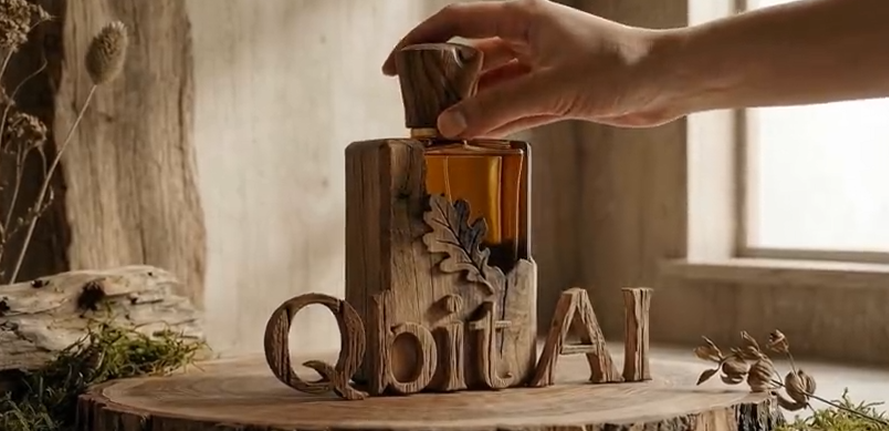 实操起来更直观,咱们就以从零制作一款木质调香水的广告宣传物料为例。第一步,先搞定香水瓶体的包装设计。