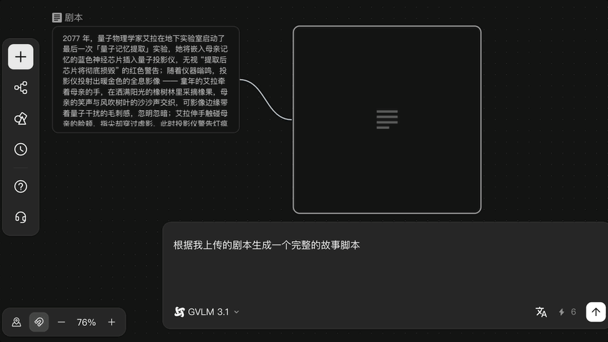 如果手里有现成的素材,上传就能用;暂时没有素材也没关系,完全可以在画布内从零生成。每个类型的节点都搭载高可控、专业化的功能,既能快速批量生成内容,也能精细化打磨细节。