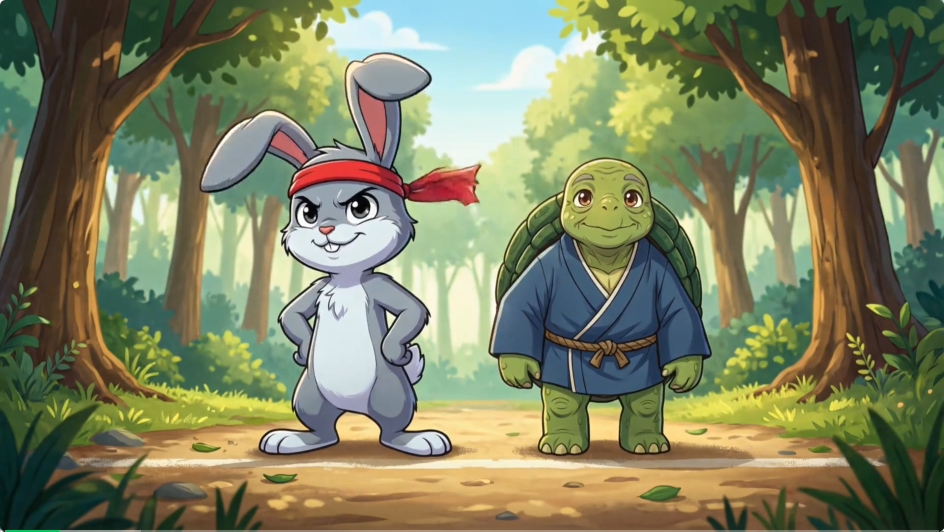 比如我甩给我的有道?一句话,让它给我做个龟兔赛跑的短片。