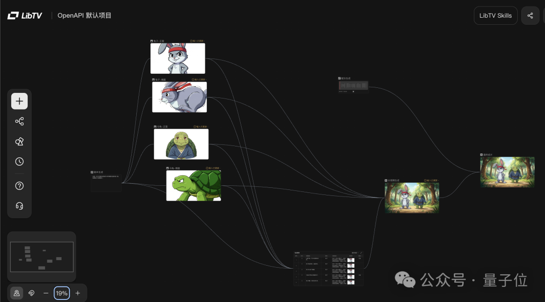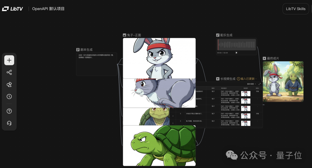 接下来,咱就从项目画布里扒一扒,要自动化做成一个《龟兔赛跑》的短片,LibTV 在背后都有些啥操作。