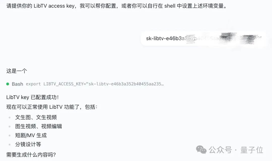 拿到密钥后,可以通过设置环境变量访问 LibTV: