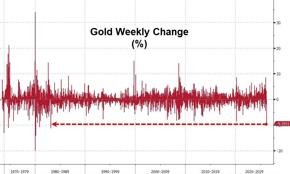 黄金本周遭遇43年来最惨烈的单周跌幅,历史的回声令市场不寒而栗。