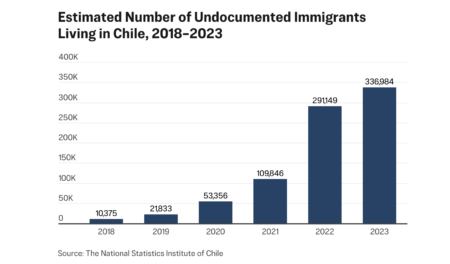 经由这一通道涌入的非法移民数量激增,也给公共资源造成了压力,并引起了智利居民的担忧。最新官方数据显示,截至2023年,智利境内共有336,984名“无证”(undocumented)移民,占估计外国人口总数的17%以上。而2018年,这个数字仅略高于10,000人。