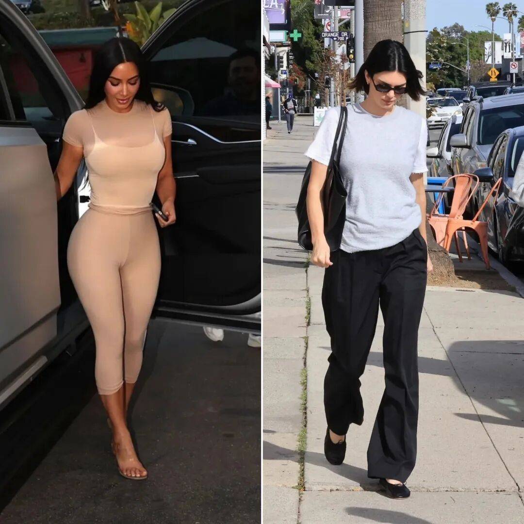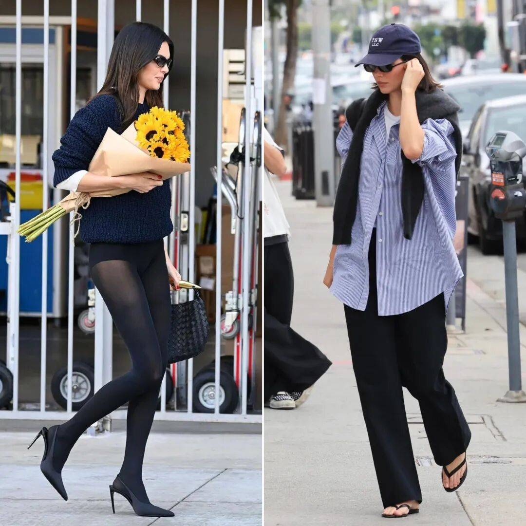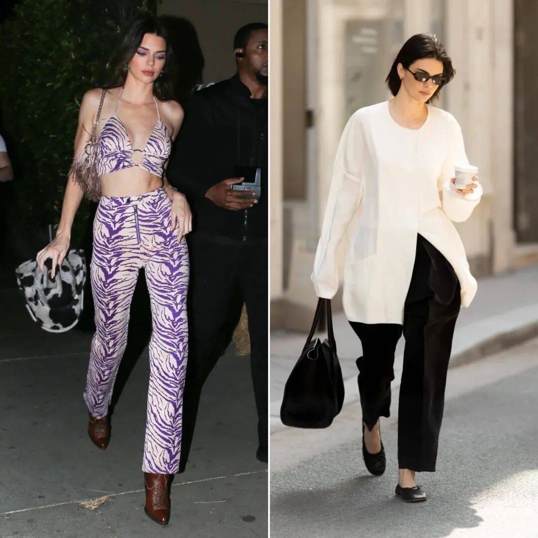 去年卡戴珊(左)和肯豆(右)的街拍▼