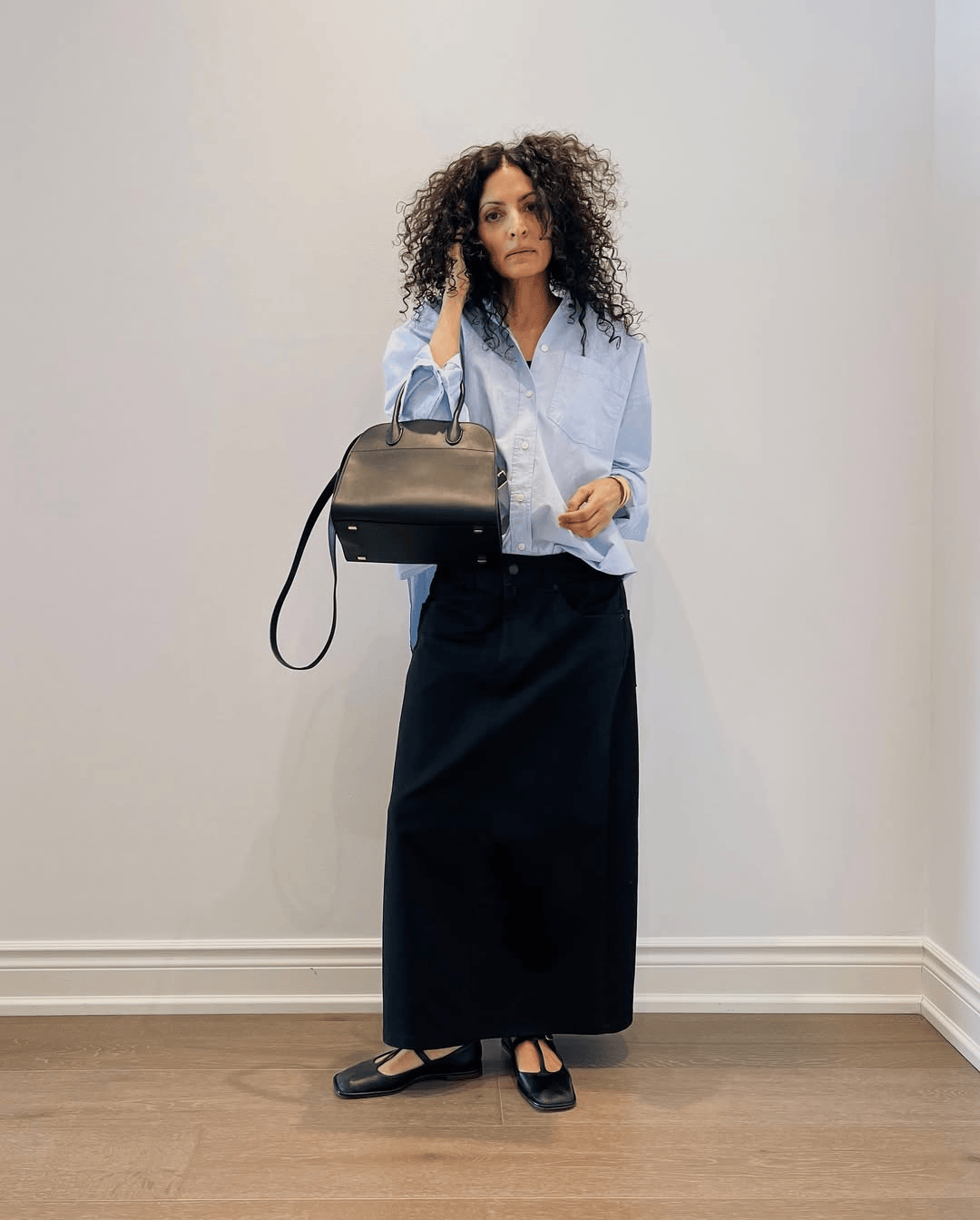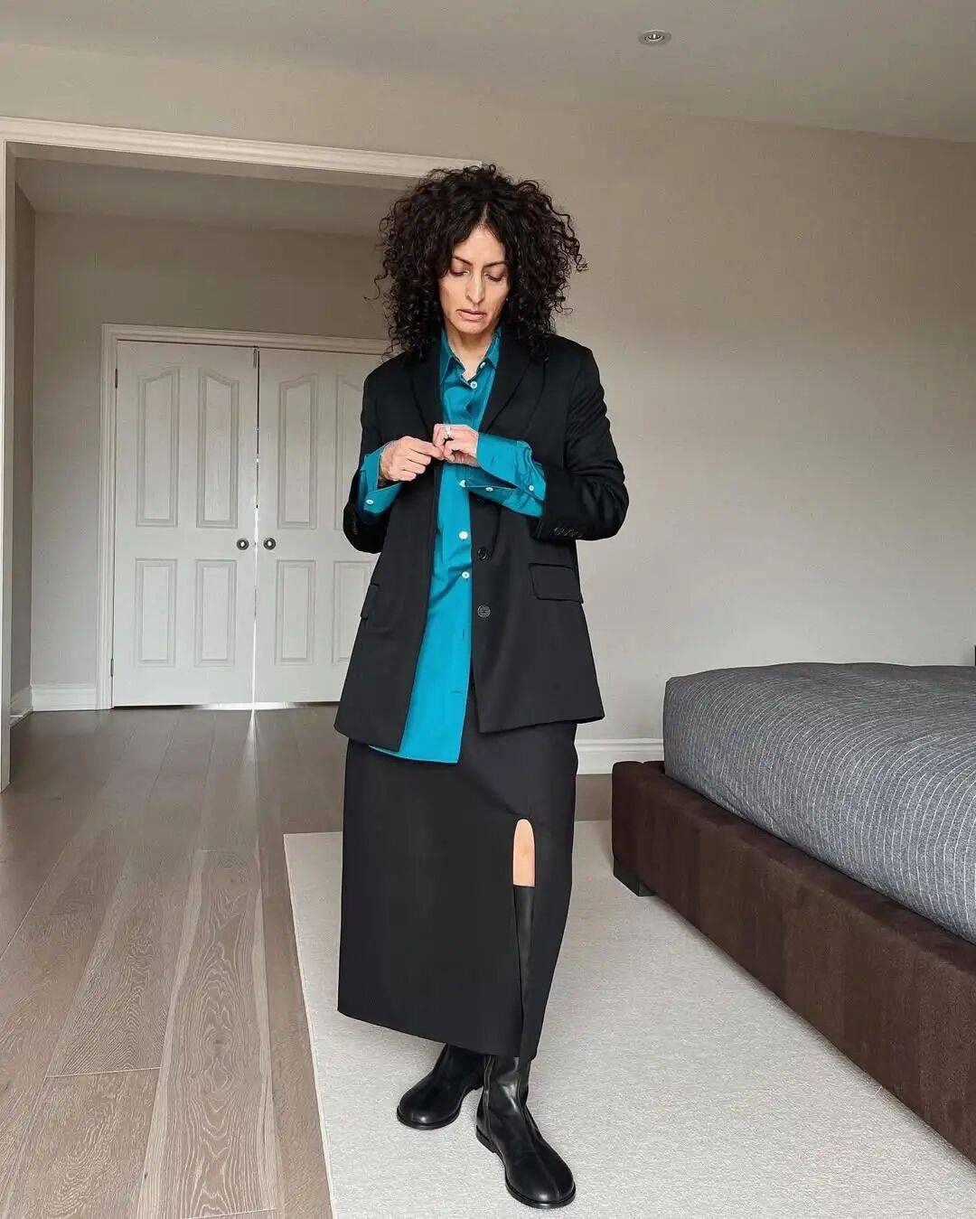 像造型师兼博主的Neelam Ahooja,她虽然是The Row的忠实粉丝和收藏者,但她更喜欢的是The Row的风格。所以她也会混搭其他同样极简的品牌一起穿,比如COS、Studio Nicholson、La Collection。▼