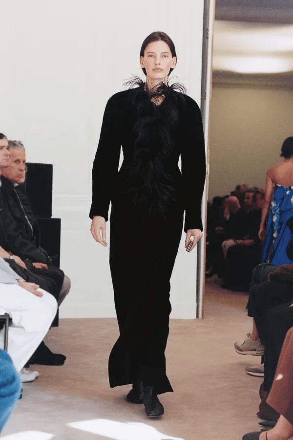 从2025春夏季开始,也悄悄融入了一些“克制的极繁”——2026秋冬系列里,就出现了一些羽毛的元素。▼
