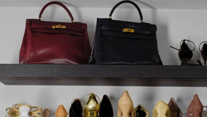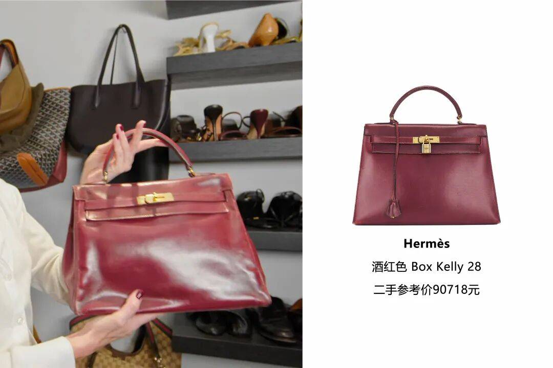 不过这次录视频,真正让她满心欢喜、专门从柜子里翻出来展示的,是一只背得很旧很旧的酒红色Kelly。