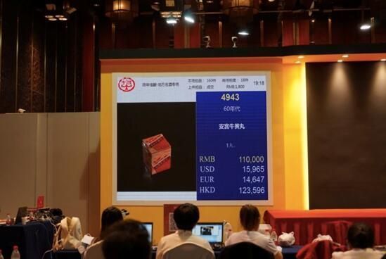 2017年4月,在北京举行的中鸿信二十周年春季拍卖会中,一粒产自60年代的广誉远安宫牛黄丸被卖到了11万元的天价。